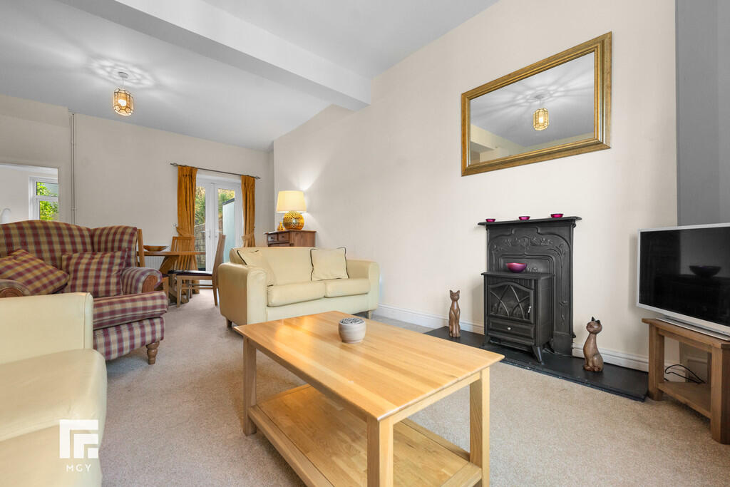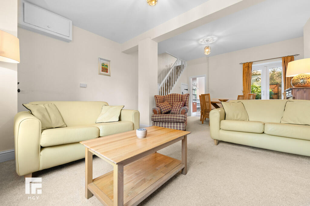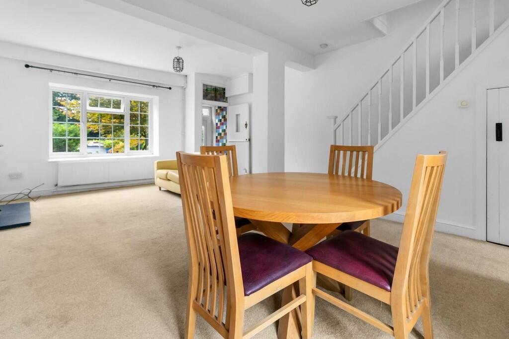 LOUNGEANDDININGROOM21' 0" x 14' 9" (6.4m x 4.5m) Upvc double glazed window to front elevation and French doors to rear. Traditional style spindle staircase with understairs cupboard. Decorative cast iron fireplace with slate hearth. Door to Kitchen.