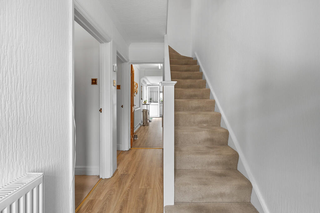 BEDROOMTWO10' 7" x 10' 7" (3.238 m x 3.243 m) PVC window of rear aspect. Coving. Built-in wardrobe housing boiler. Radiator. TV aerial point.