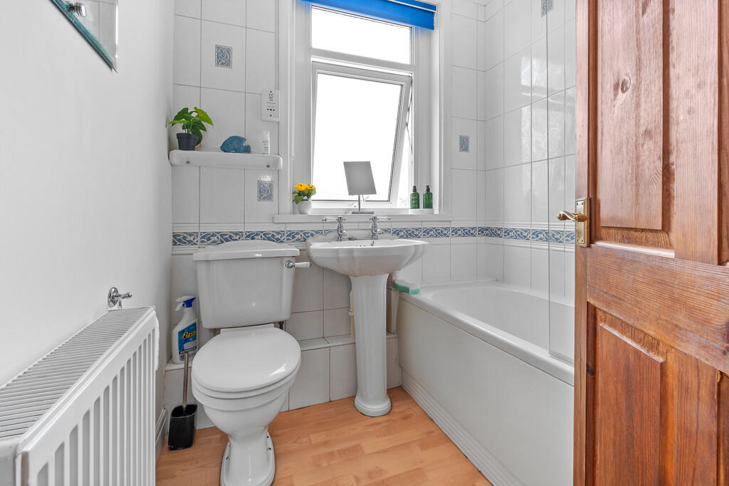 BATHROOM5' 11" x 5' 9" (1.813 m x 1.775 m) PVC window with obscure glass rear aspect, Bath unit with showerhead above and glass shower screen. Coving. WC. Wash hand basin. Radiator.