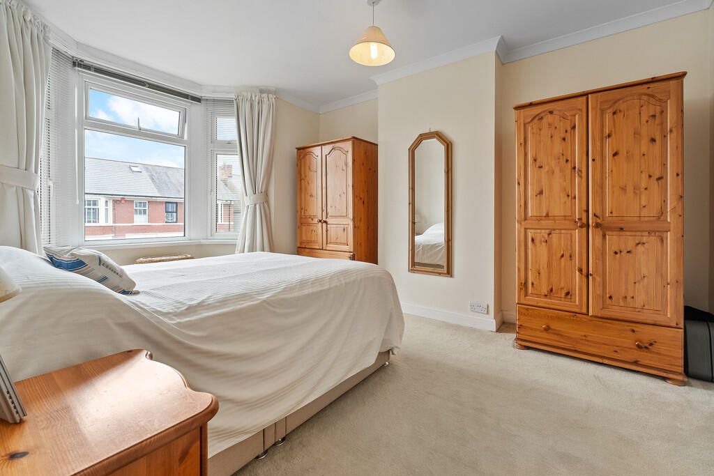 BEDROOMONE14' 0" x 10' 7" (4.269 m x 3.229 m) PVC bay window to front aspect. Radiator. Coving.