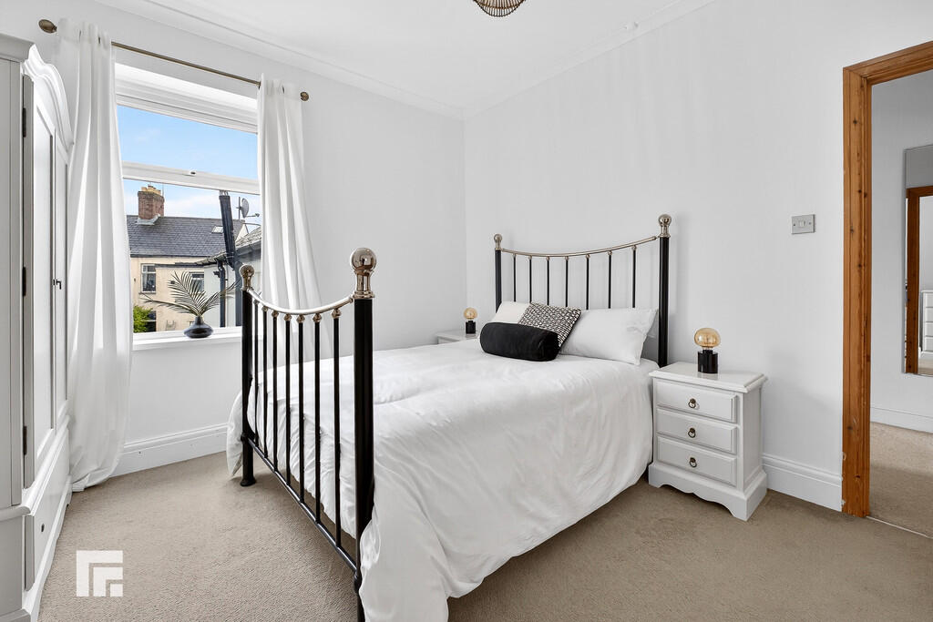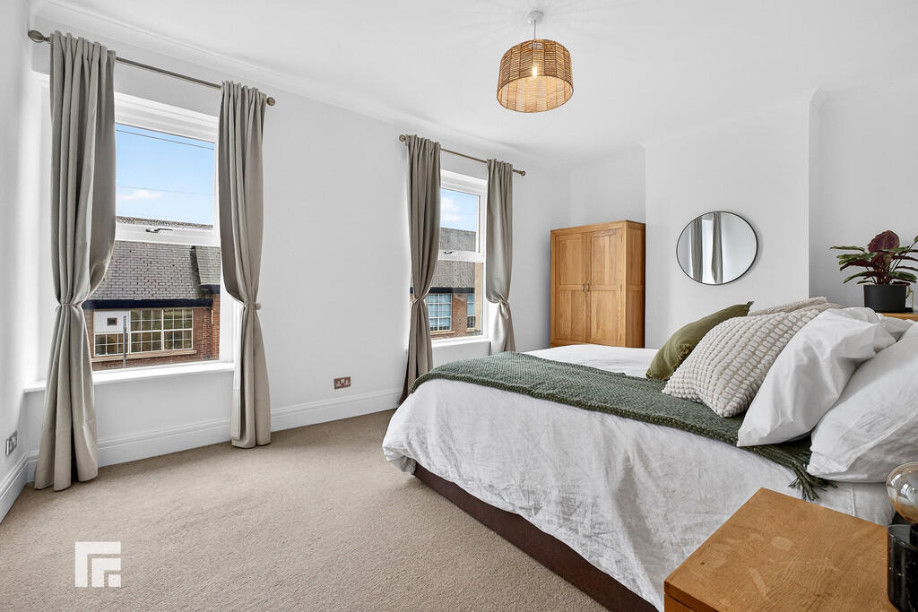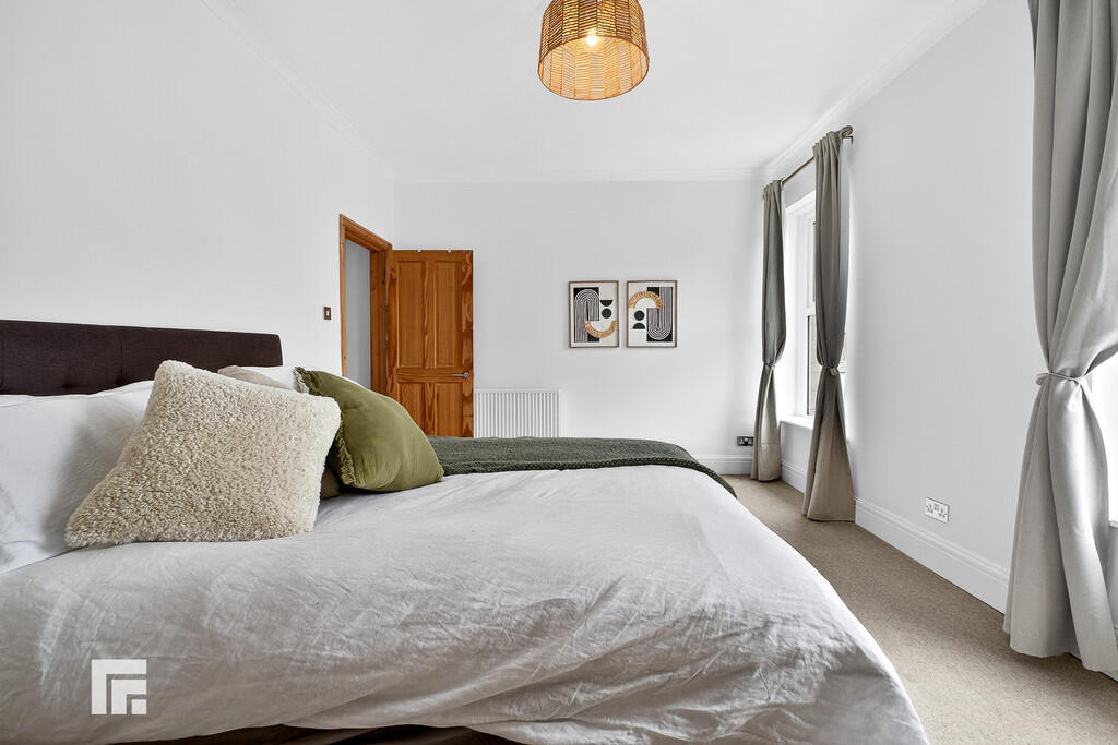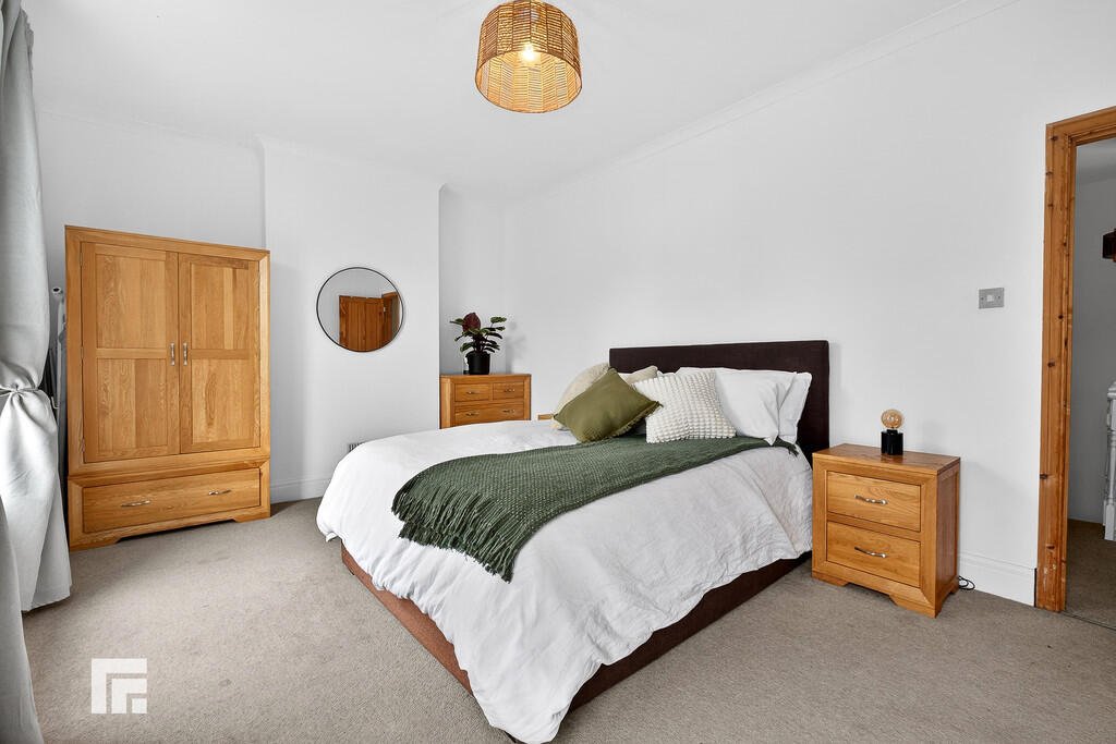 BEDROOMONE17' 4" x 11' 3" (5.30m x 3.44m) Good size principal bedroom with two double glazed windows to front aspect. Carpeted flooring. Coving to ceiling. Alcoves. Pendant light fitting. Radiator.