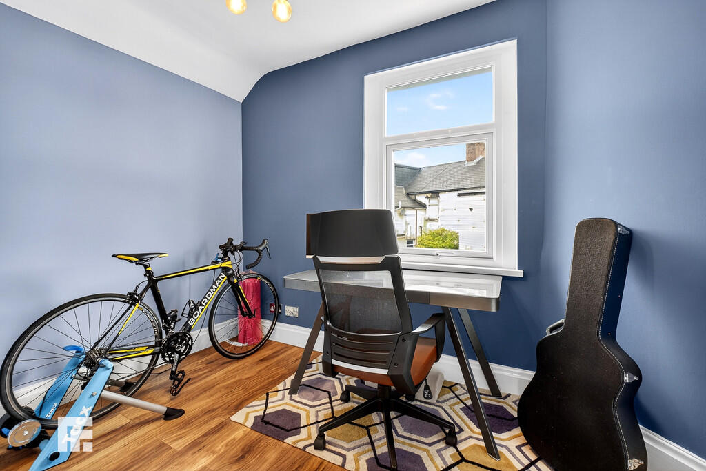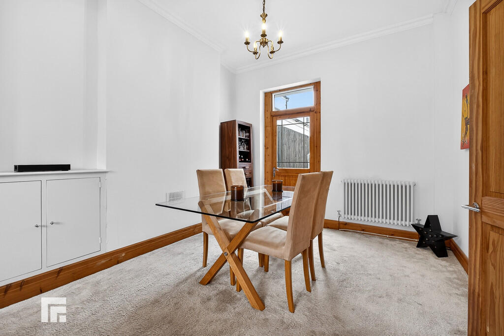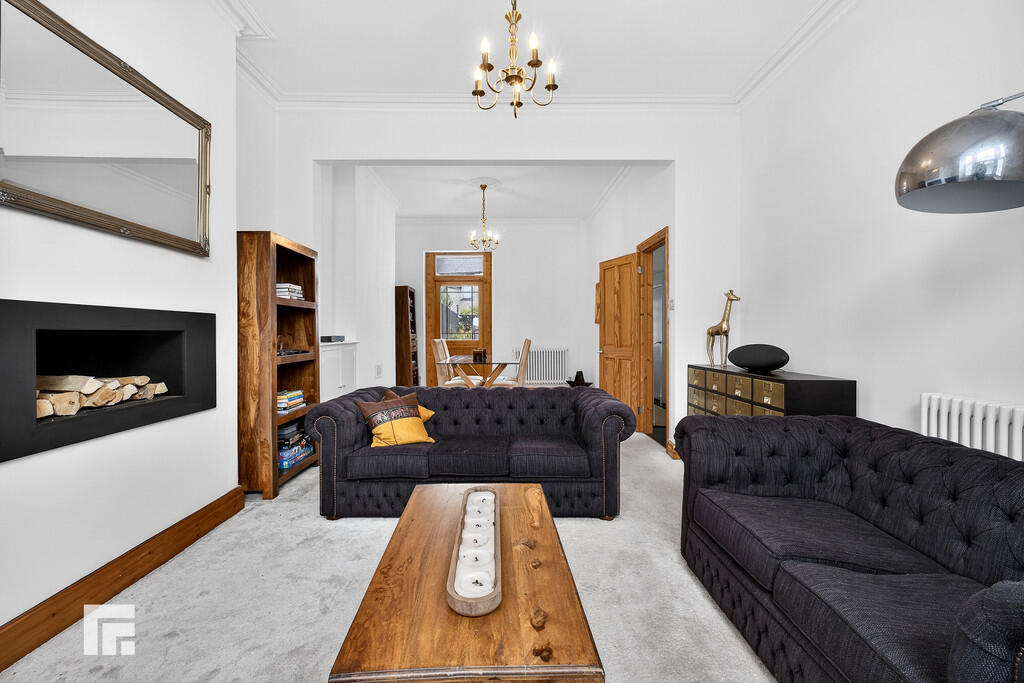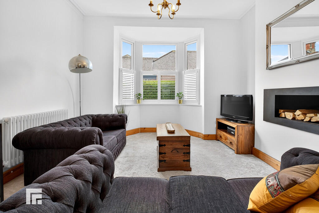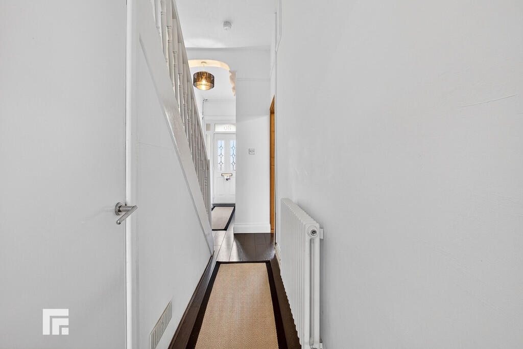 ENTRANCEHALL Front forecourt enclosed with mature hedges, plus low rise brick wall with wrought Iron gate. Entered via composite front door with obscured glass to top panels. Original features include picture rail, ceiling arch and coved ceiling. Wooden flooring. Pendant light fitting. Radiator. Doors to all rooms including under stair storage cupboard. Stairs rising to first floor.