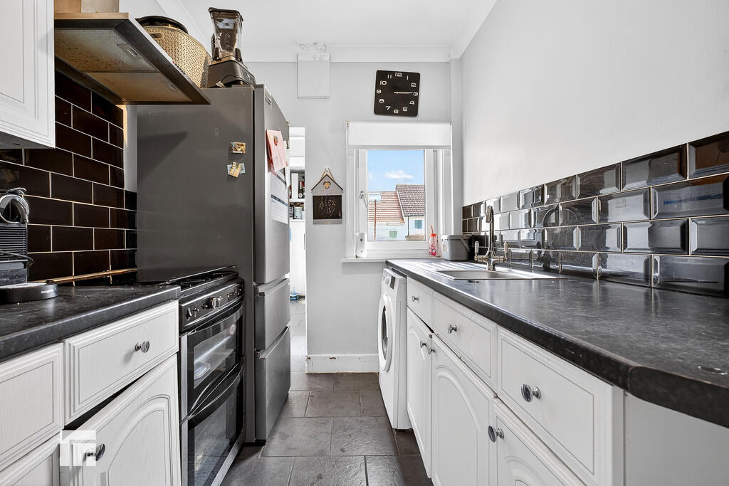 KITCHEN6' 09" x 9' 02" (2.06m x 2.79m) Double glazed window to the rear. Ceramic tile flooring. Fitted kitchen to comprise a range of base and wall units with rolled edge laminated work surfaces, incorporating stainless steel sink and drainer with mixer taps over recess and plumbing for recess and plumbing for appliances. Space for a fridge/freezer and cooker. Double glazed door to rear garden. Door to lobby, a radiator and double glaze window to the side.