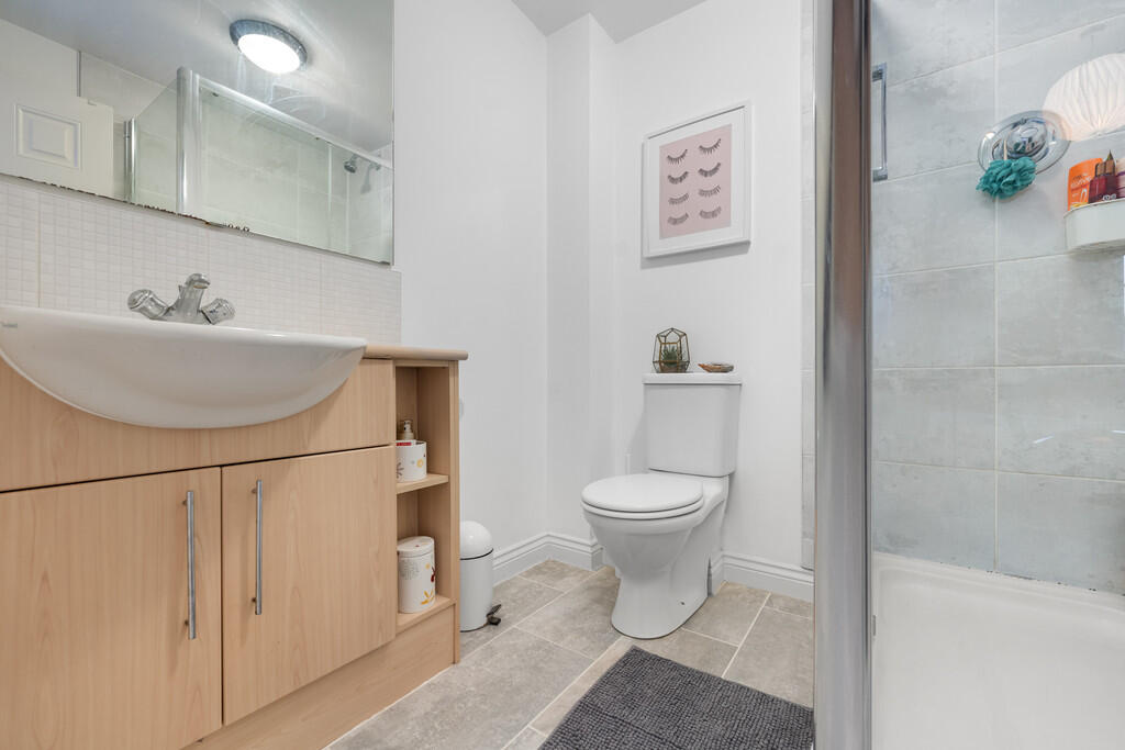EN-SUITE6' 5" x 6' 1" (1.97m x 1.87m) The suite comprises low level WC, vanity enclosed wash hand basin and double shower cubicle with mixer shower over. Tiled splash backs and flooring. Extractor fan. Ladder radiator.