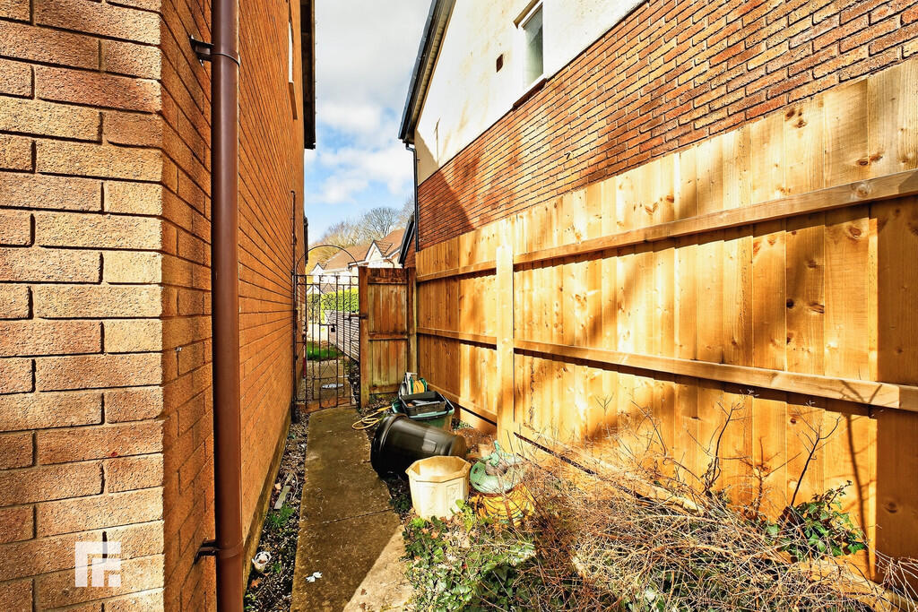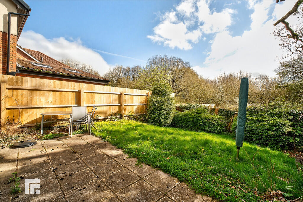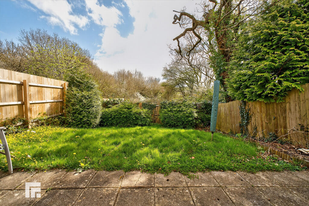 Rear - Laid to patio. Wall and fence border. Shingled areas.