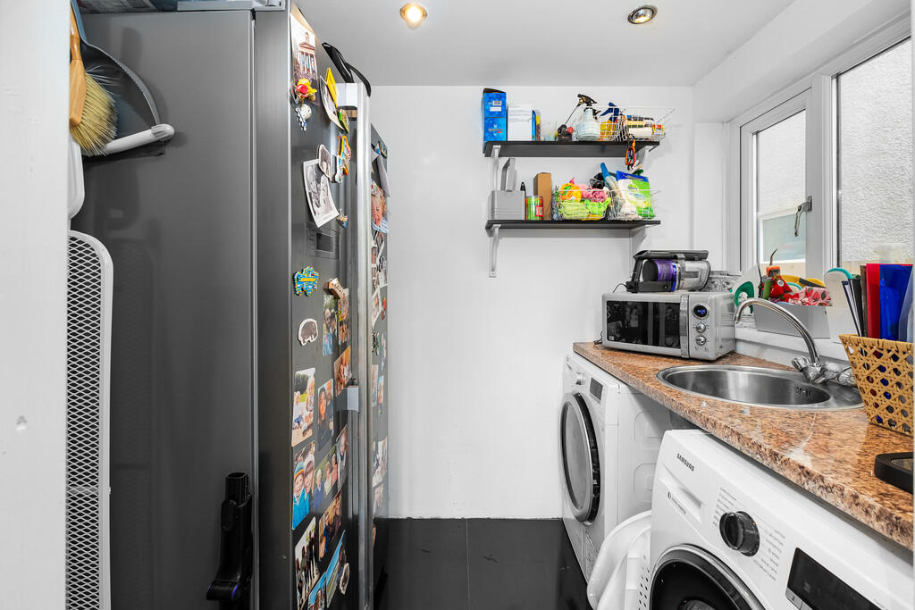 UTILITYROOM7' 1" x 5' 3" (2.160m x 1.623m) Tiled flooring. Spotlights. PVC double glazed window to side aspect. Square edge countertop with with sink. Space for white goods below.