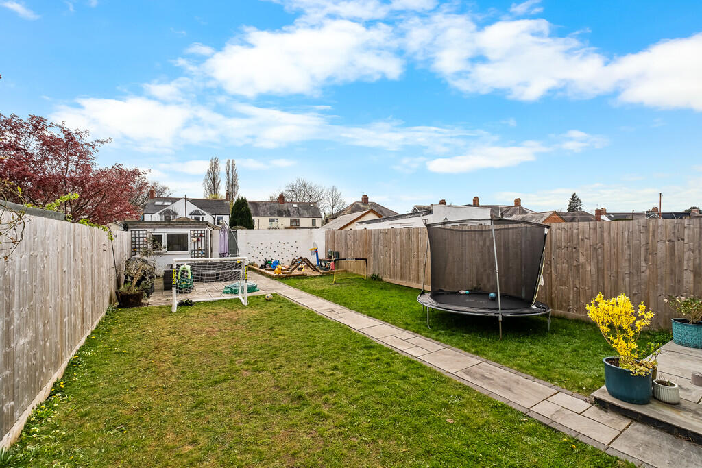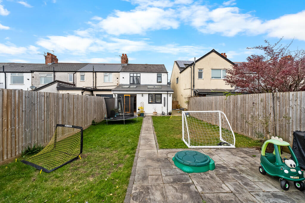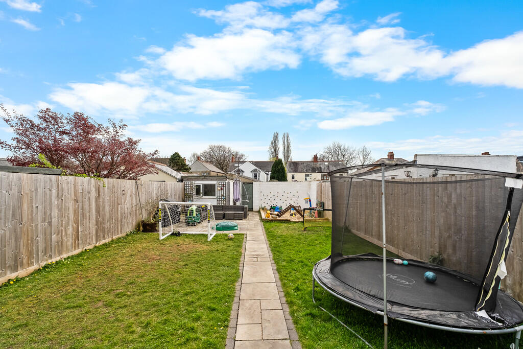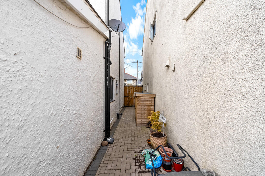 OUTSIDE South facing rear garden laid mainly to lawn with patio area. Sectioned off play pit with chippings. Access to front and access to rear lane.