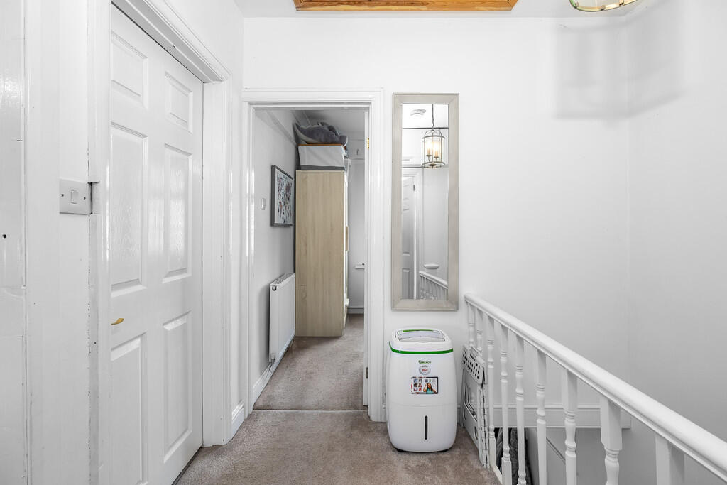 UPSTAIRS First floor landing - Loft hatch. Built in wall mounted storage housing - EV charger box. Doors to all rooms.