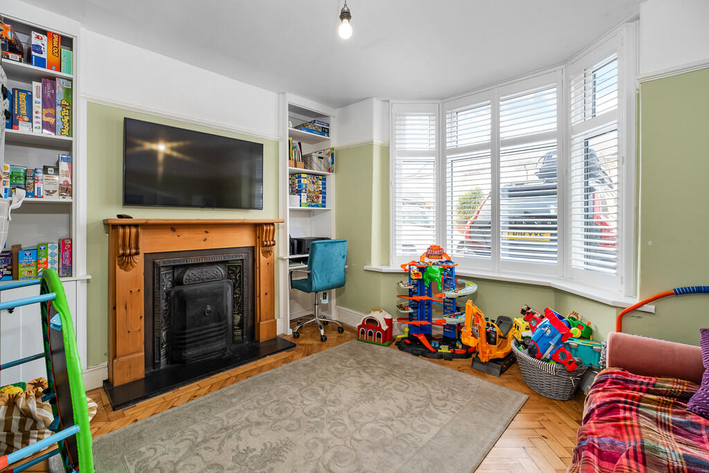 FRONTLIVINGROOM10' 1" x 12' 2" (3.077m x 3.730m) Oak parquet flooring. PVC double glazed bay window with shutters to front aspect. Two built-in alcove storage shelves and storage fireplace. Picture rails. Radiator.