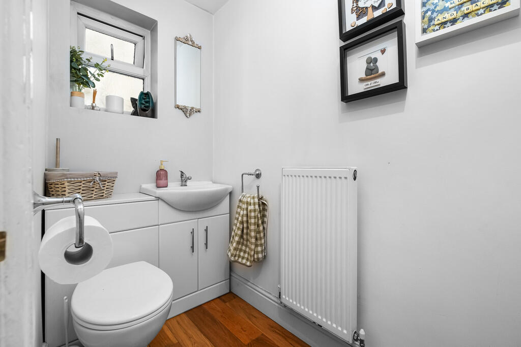 DOWNSTAIRSWC3' 5" x 7' 2" (1.059m x 2.196m) Oak flooring. PVC double glazed window with obscure glass to side aspect. Wc, wash hand basin with storage unit. Radiator. Spotlights.