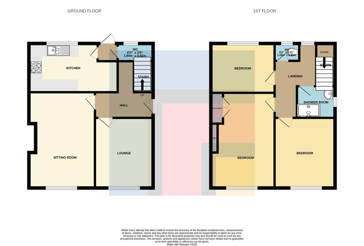 SHOWERROOM5' 2" x 6' 7" (1.59m x 2.01m) Obscured double glazed window to side. Shower cubicle with electric shower, pedestal wash hand basin with hot and cold taps. Radiator.