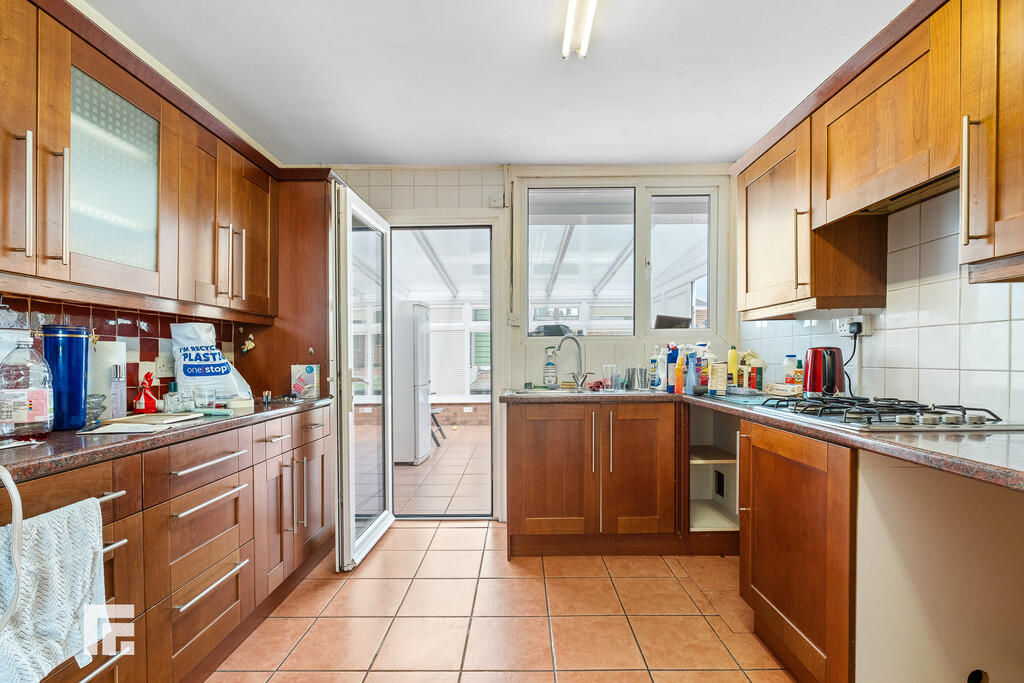 KITCHEN12' 5" x 9' 11" (3.78m x 3.02m) Fitted kitchen to comprise a range of base and wall units with rolled edge laminated work surfaces incorporating stainless steel sink and drainer with mixer taps over. Built in four burner gas hob and electric oven. Recess and plumbing for appliance. Ceramic tile flooring. Double glazed window to the rear.