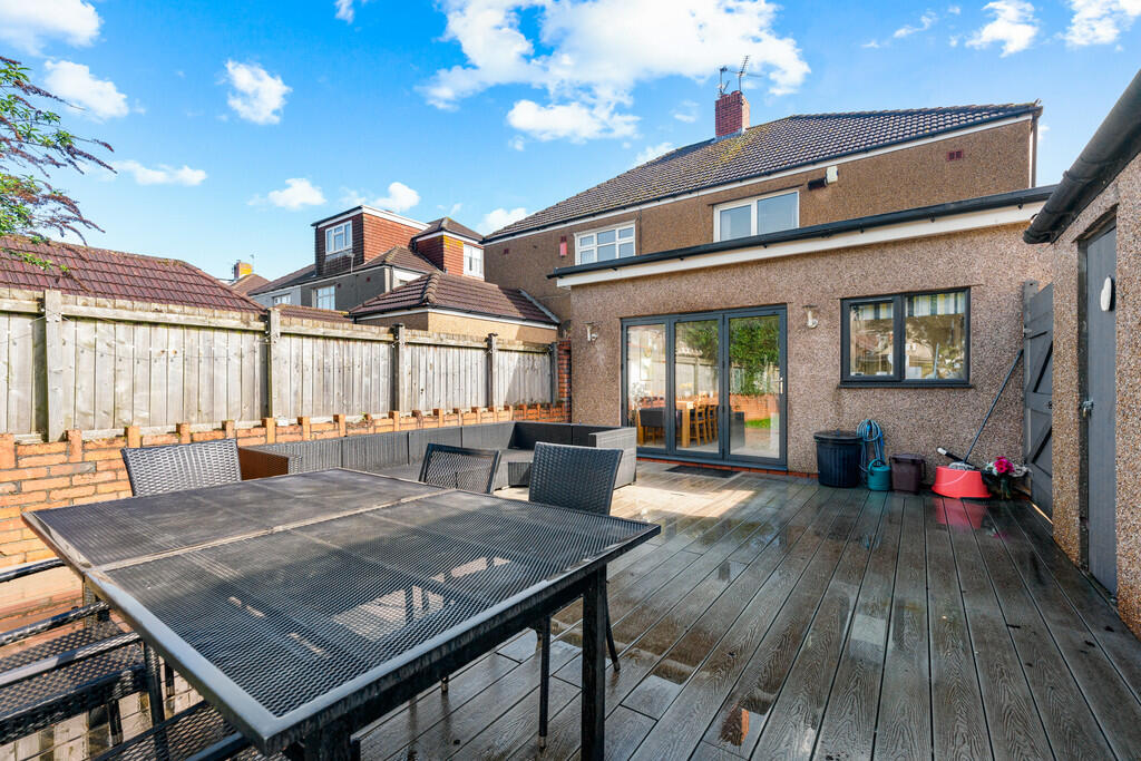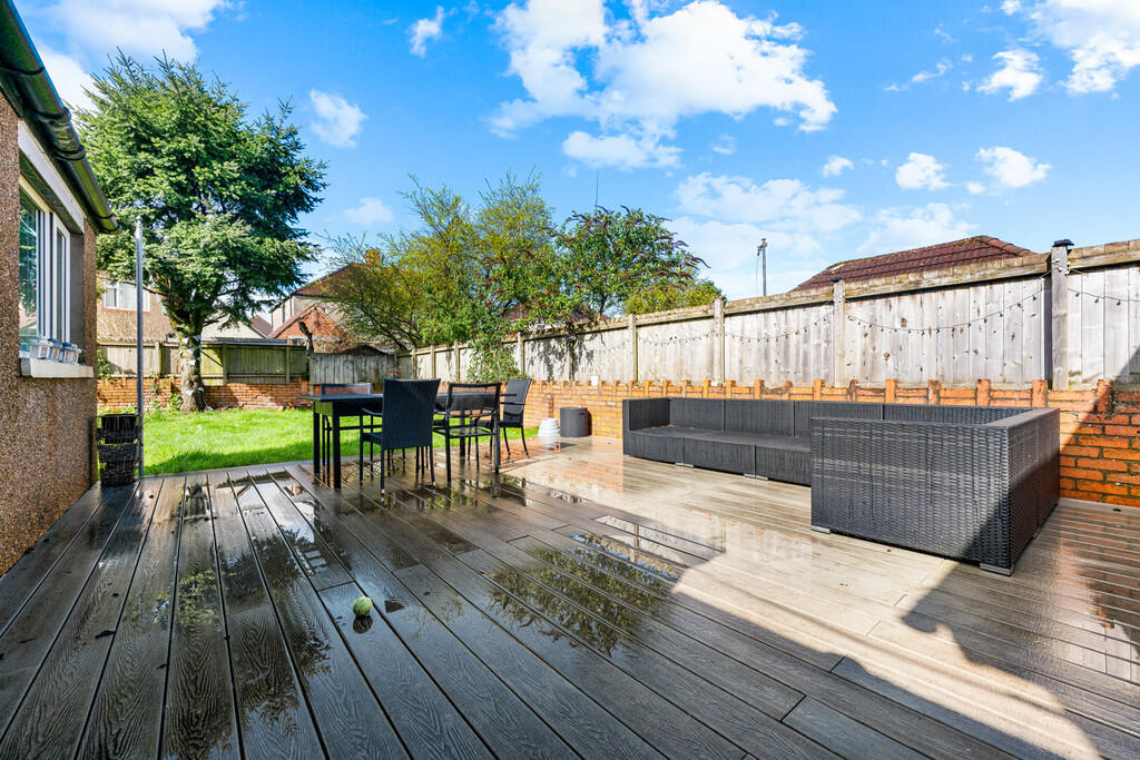 Rear - Enclosed rear garden offering a combination of composite decking with the remainder laid to lawn. Side access leading to driveway and side door leading to garage.