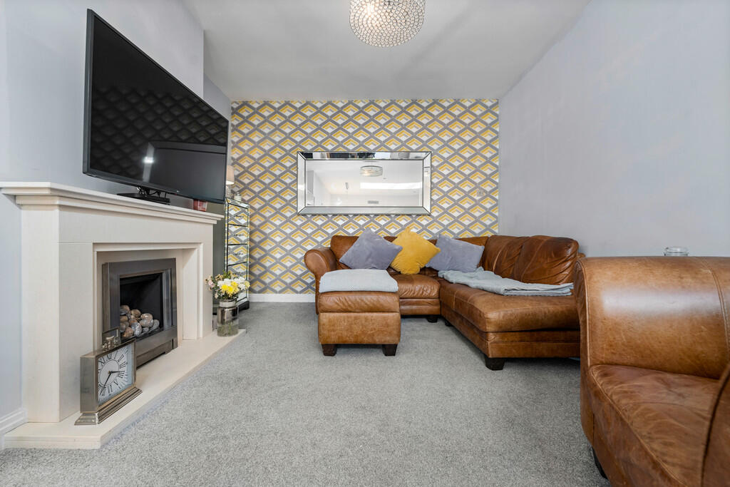 SITTINGROOM12' 8" x 11' 2" maximum (3.88m x 3.42m) Feature fireplace and surround. Smooth walls and ceiling with a central light pendant and carpeted flooring to finish. Open plan to kitchen/dining room.