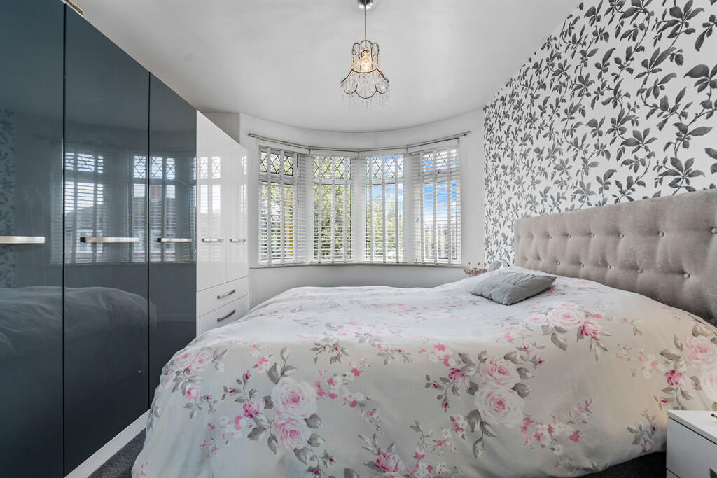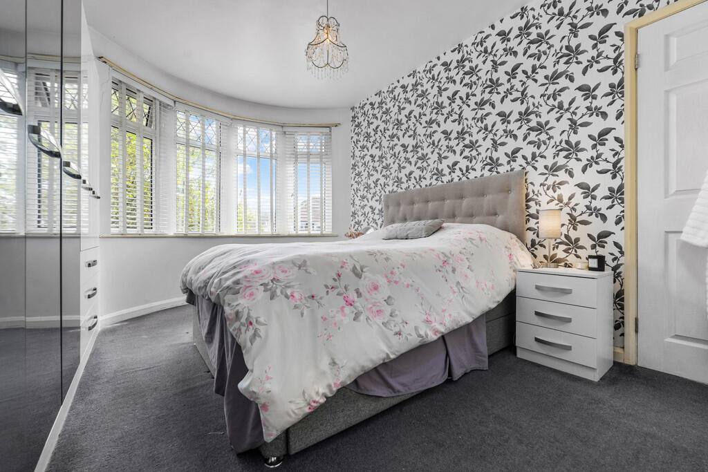 BEDROOMONE14' 2" into bay x 10' 7" Maximum (4.33m x 3.25m) Smooth walls and ceiling with a central light pendant and carpeted flooring. Upvc double glazed bay window to front.