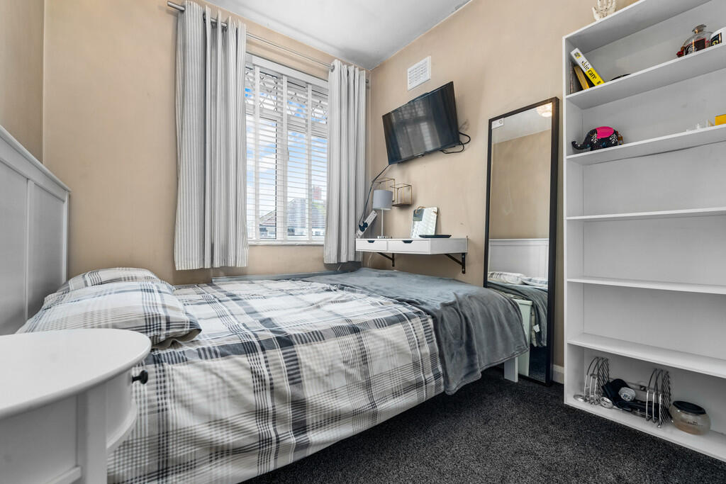 BEDROOMTHREE7' 10" x 7' 7" (2.40m x 2.33m) Smooth walls and ceiling with a central light pendant and carpeted flooring. Upvc double glazed window to front.