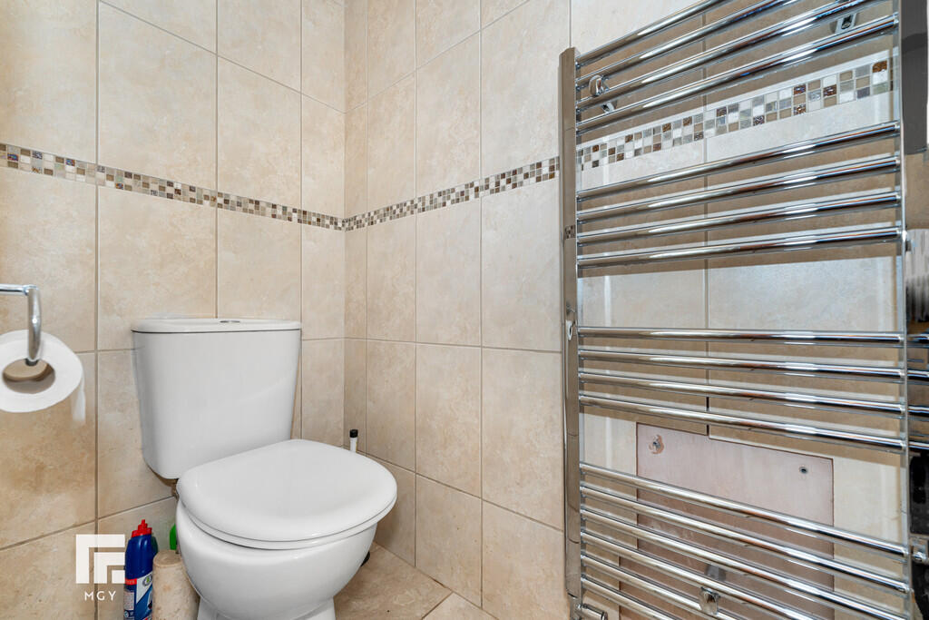 CLOAKROOM6' 7" x 2' 9" (2.03m x 0.85m) Low level WC and vanity enclosed wash hand basin. Tiled flooring and walls. Ladder radiator.