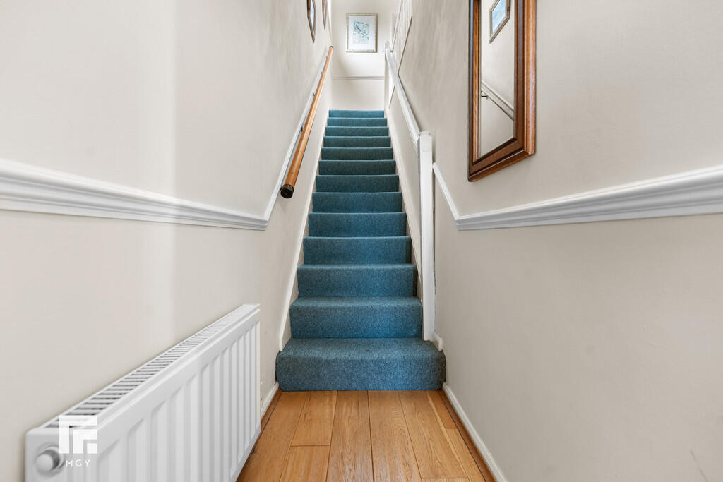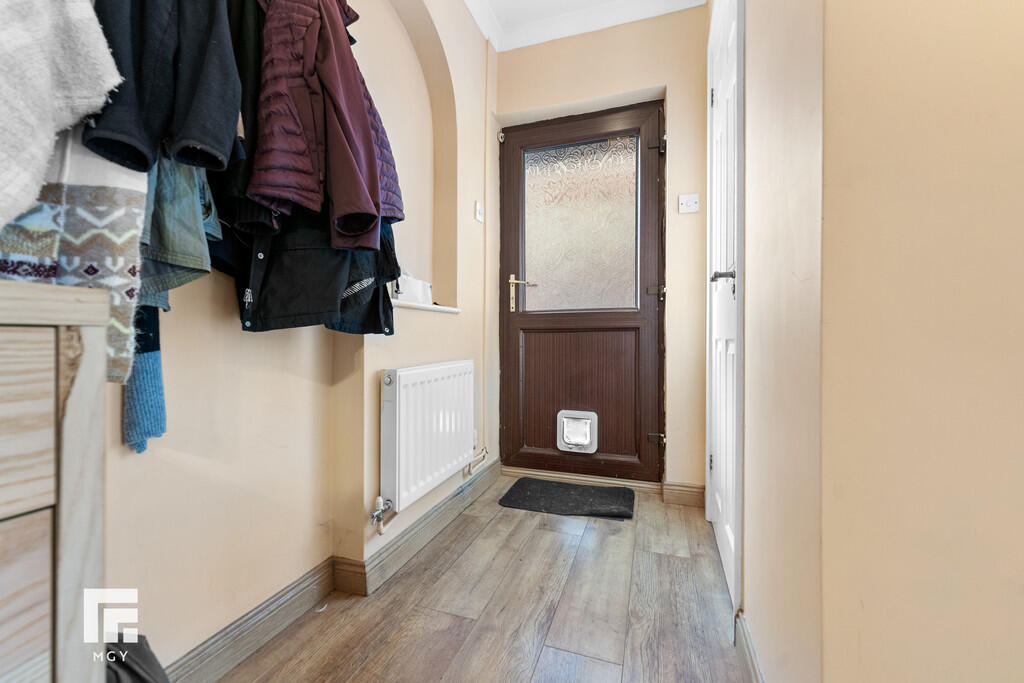 HALLWAY Entered via double glazed front door into hallway. Oak wood flooring. Radiator. Door to lounge, stairs to first floor.