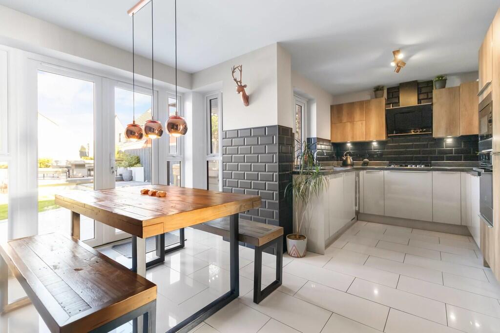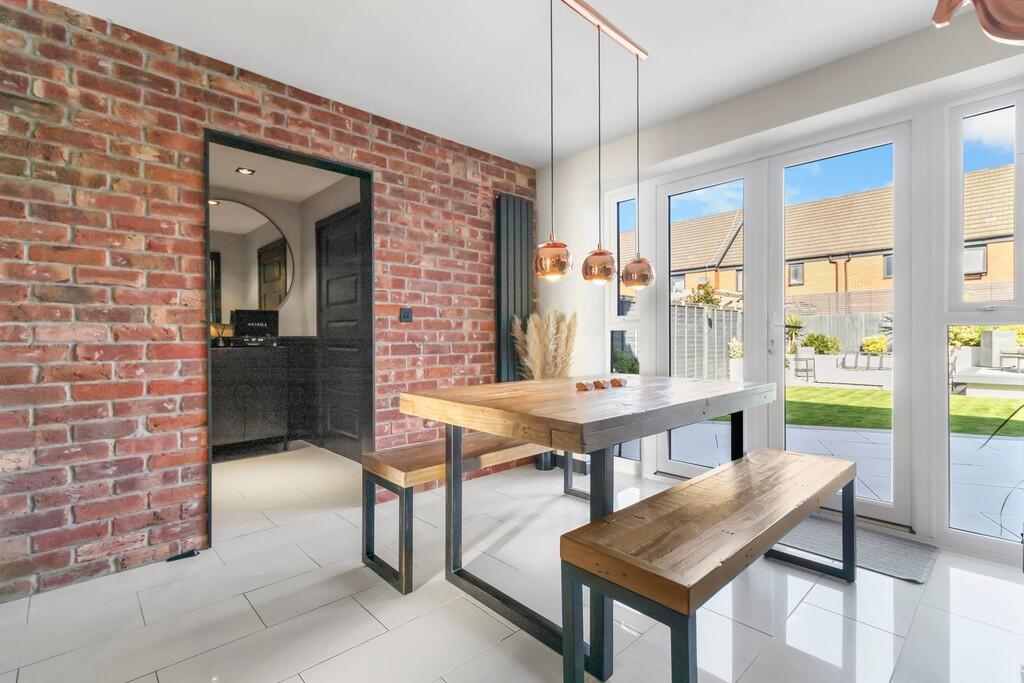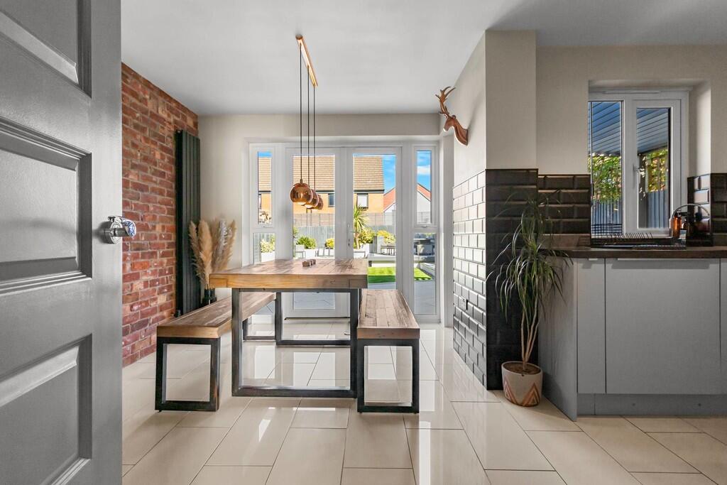 Dining Area: Continuation of flooring. Radiator. Door to integral garage. Double glazed french doors providing access to the rear garden. Open to:
