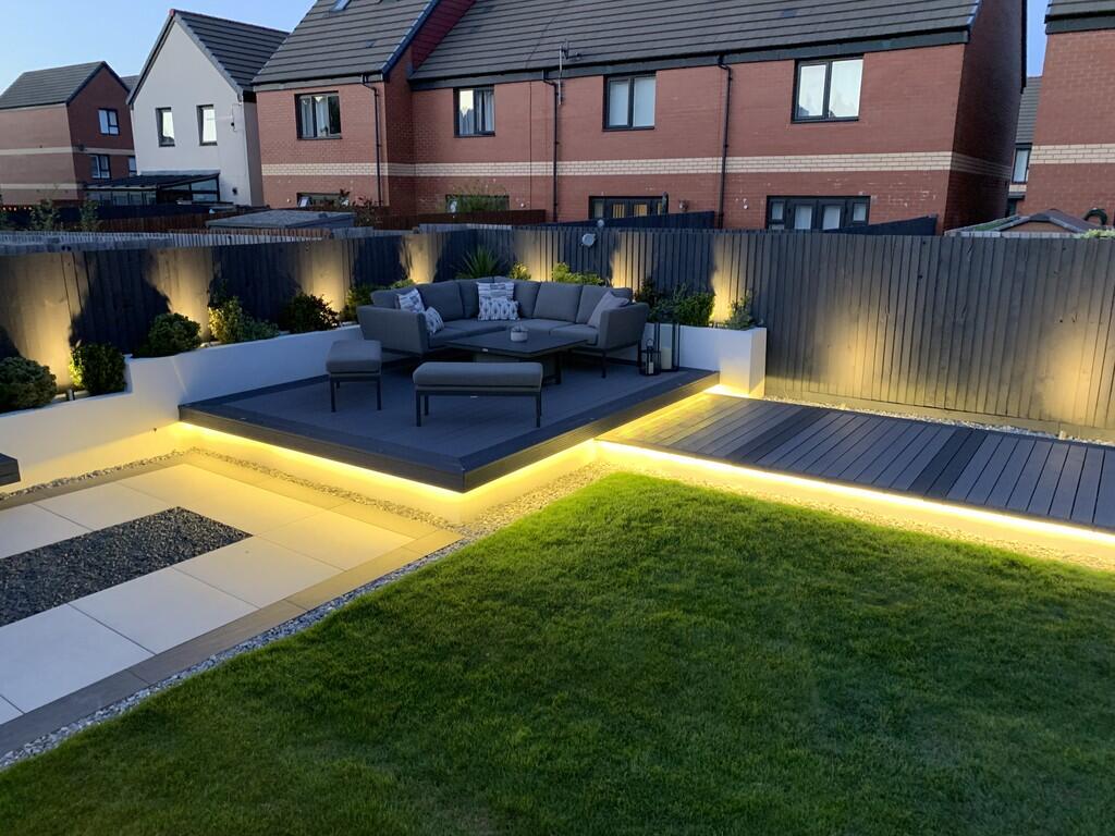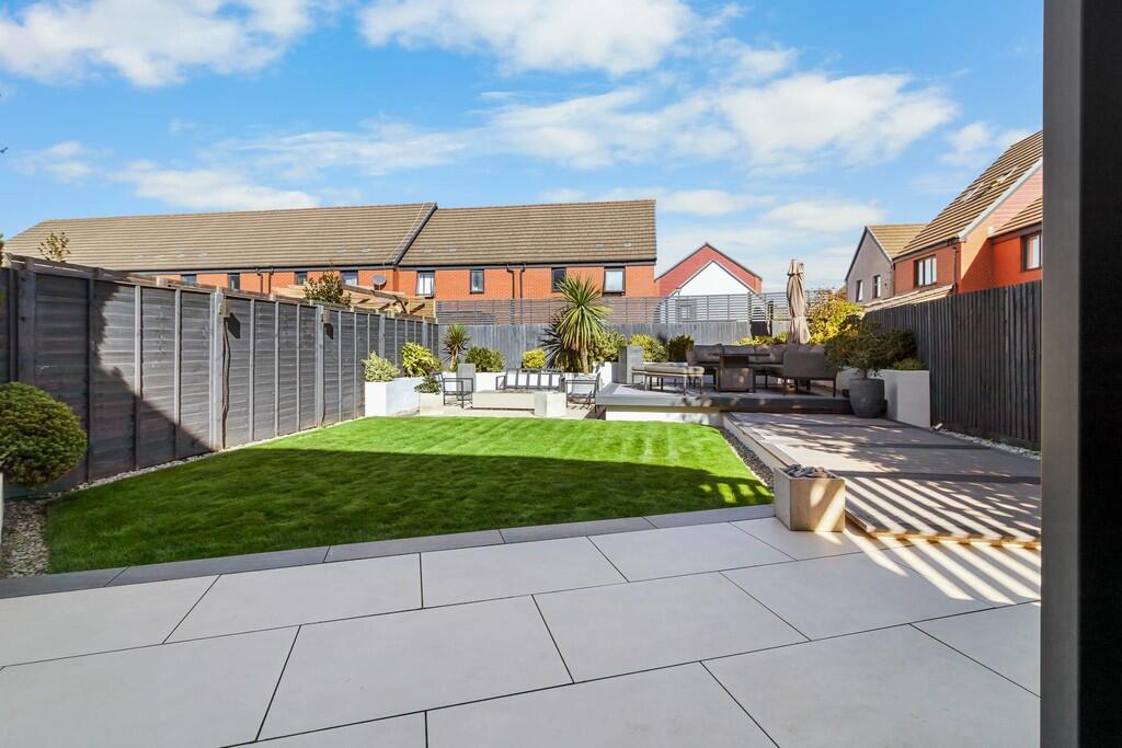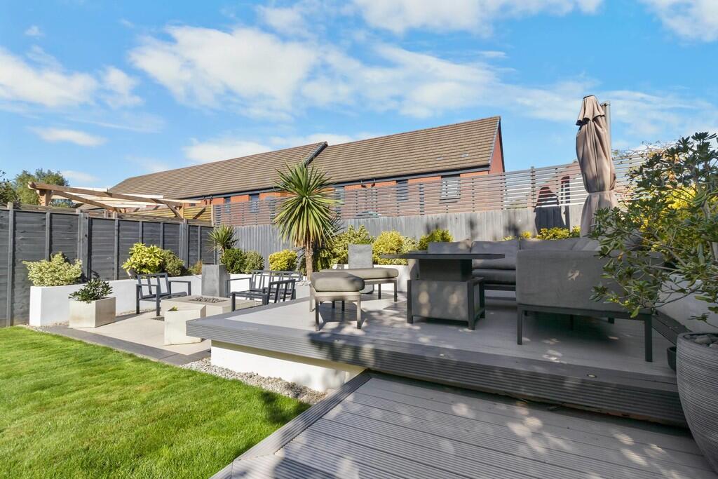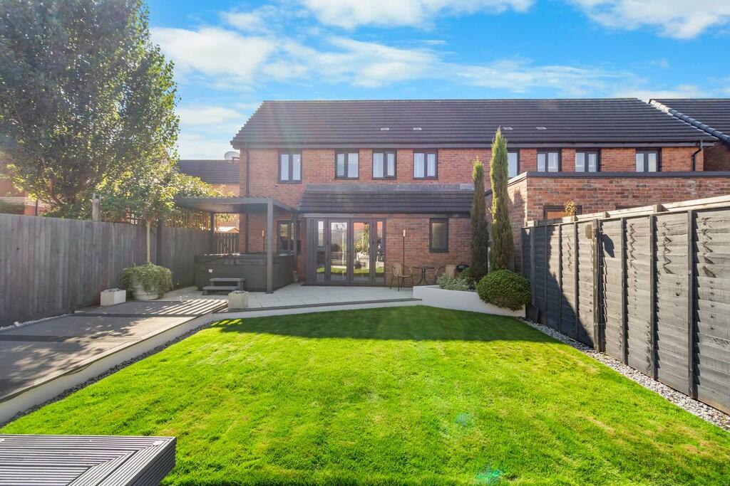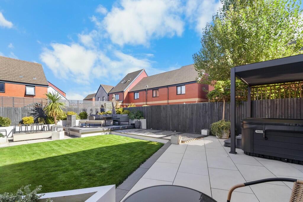 To the rear: Spacious and enclosed garden ideal for relaxing or entertaining. With several seating areas. decked and lawn area. Full size hot tub and pergola (to be negotiated).
