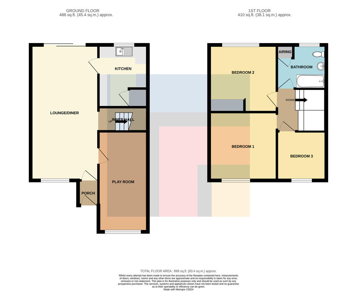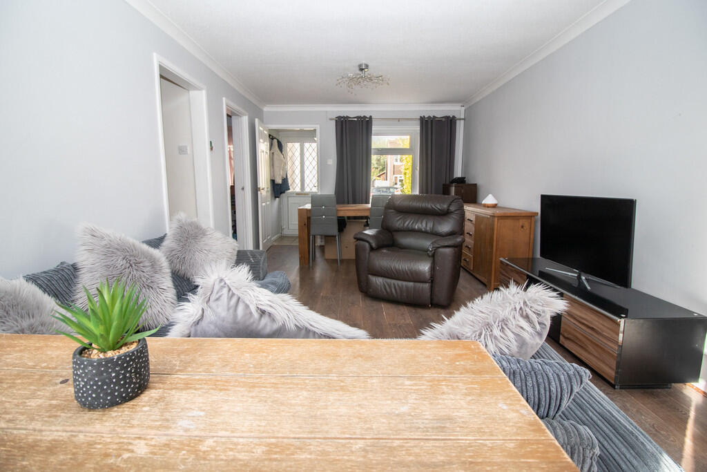 LOUNGE/DINER21' 9" x 10' 10" (6.64m x 3.32m) A good sized principal reception with window to front and patio doors to the rear garden, laminate flooring, opening to inner hallway, doors to play room and kitchen. Two radiators.