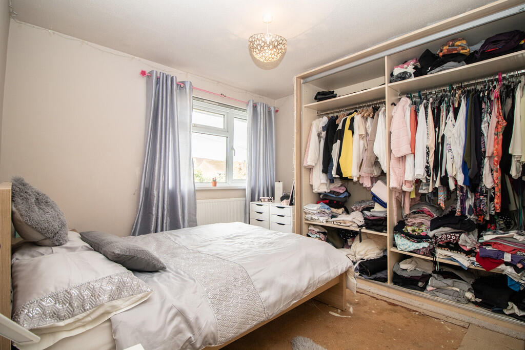 BEDROOMTWO11' 5" x 10' 7" (3.48m x 3.25m) Overlooking the rear garden, a second double bedroom, open wardrobe with hanging rail and shelving. Radiator.
