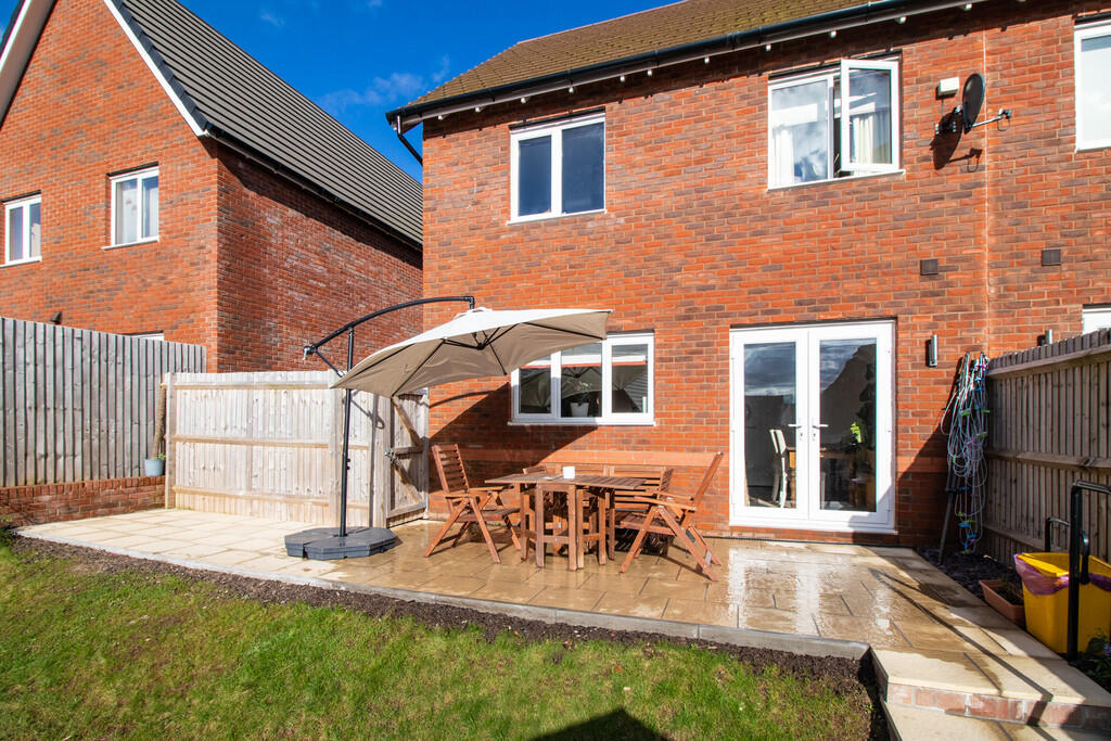 ** MODERN THREE BEDROOM SEMI ** SOUTH WEST FACING REAR GARDEN ** A bright and spacious, modern bay fronted Bellway built 'Shipton' style three bedroom semi detached family house in the popular area of Radyr, close to local amenities. Entrance hallway, bay fronted lounge, spacious kitchen breakfast room with silestone work top surfaces and integrated appliances. To the first floor there are three good sized bedrooms, ensuite shower room to bedroom one and a separate family bathroom. Gas central heating, quality Herringbone 'Noble Oak' style Amtico flooring throughout the ground floor and 'Cloud 9' carpet on the stairs, landing & bedrooms. South west facing rear garden laid mainly to lawn. Long driveway to side. EPC Rating: B