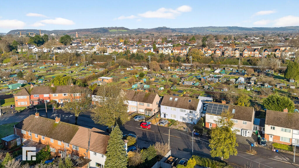 Rear- A good size garden mostly laid to lawn with paved areas. Outside tap. Backing onto allotments.