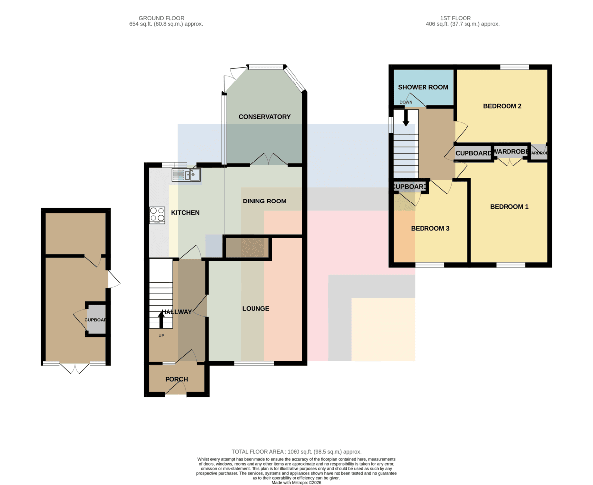 BEDROOM38' 9" x 8' 4" (2.67m x 2.54m) Double glazed window to front, radiator, fitted carpet, built in cupboard.