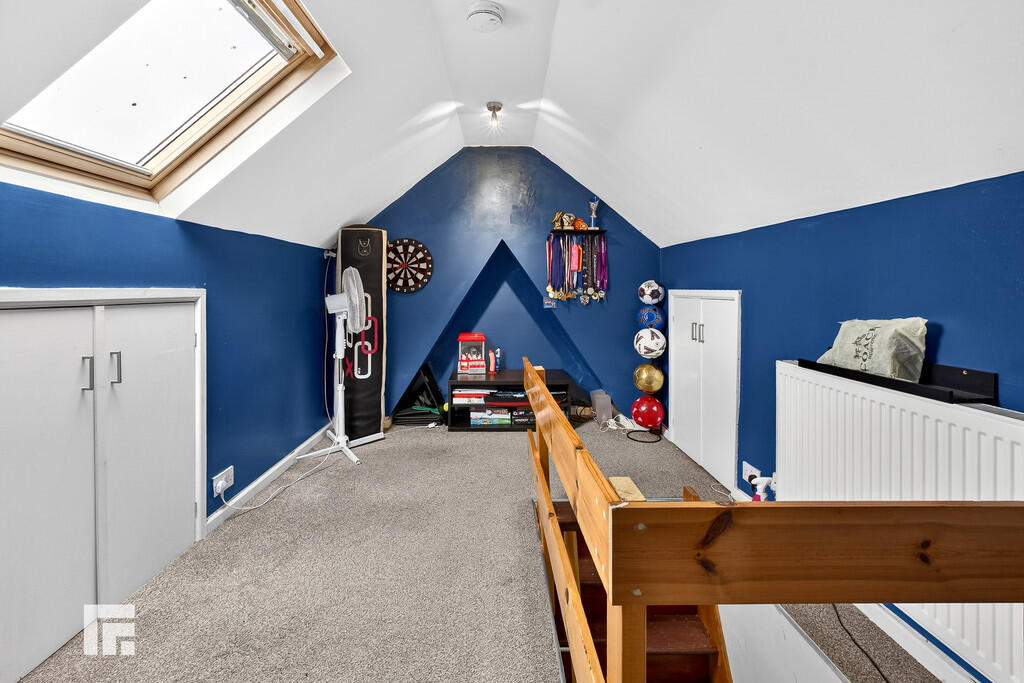 LOFTROOM14' 1" x 8' 2" (4.31m x 2.50m) A good sized space with cupboards for storage in the eaves. Velux window to front. Radiator.