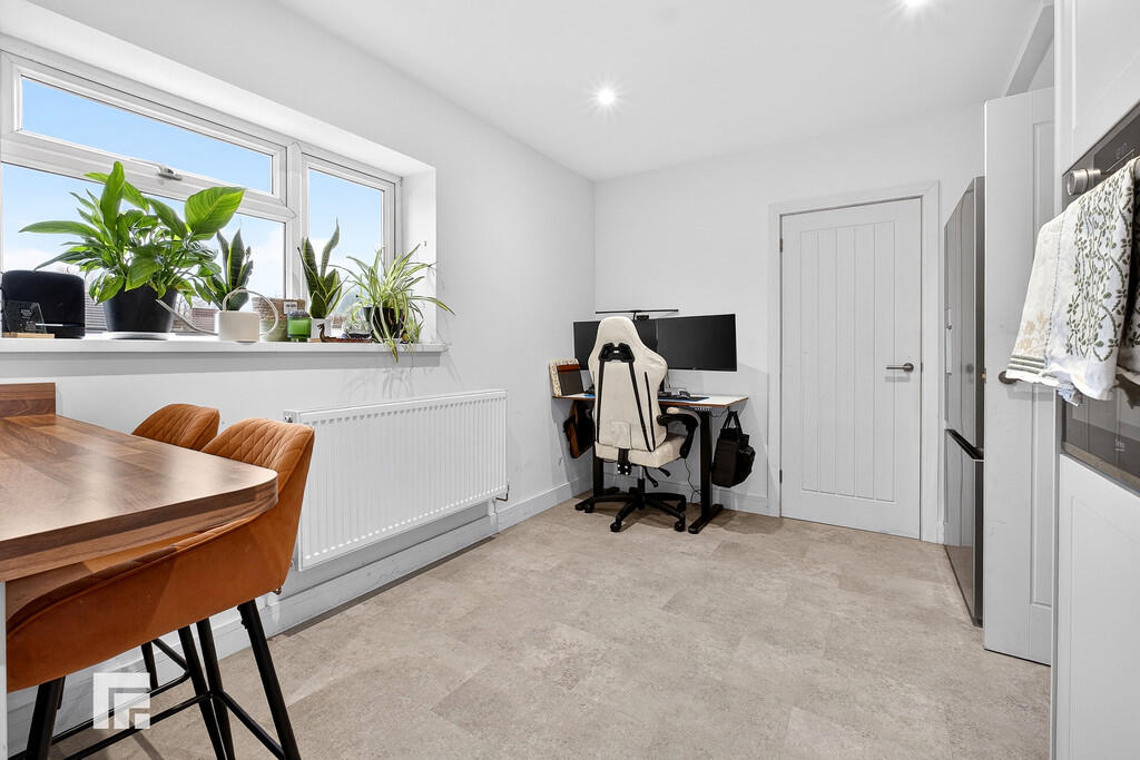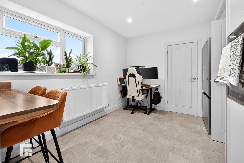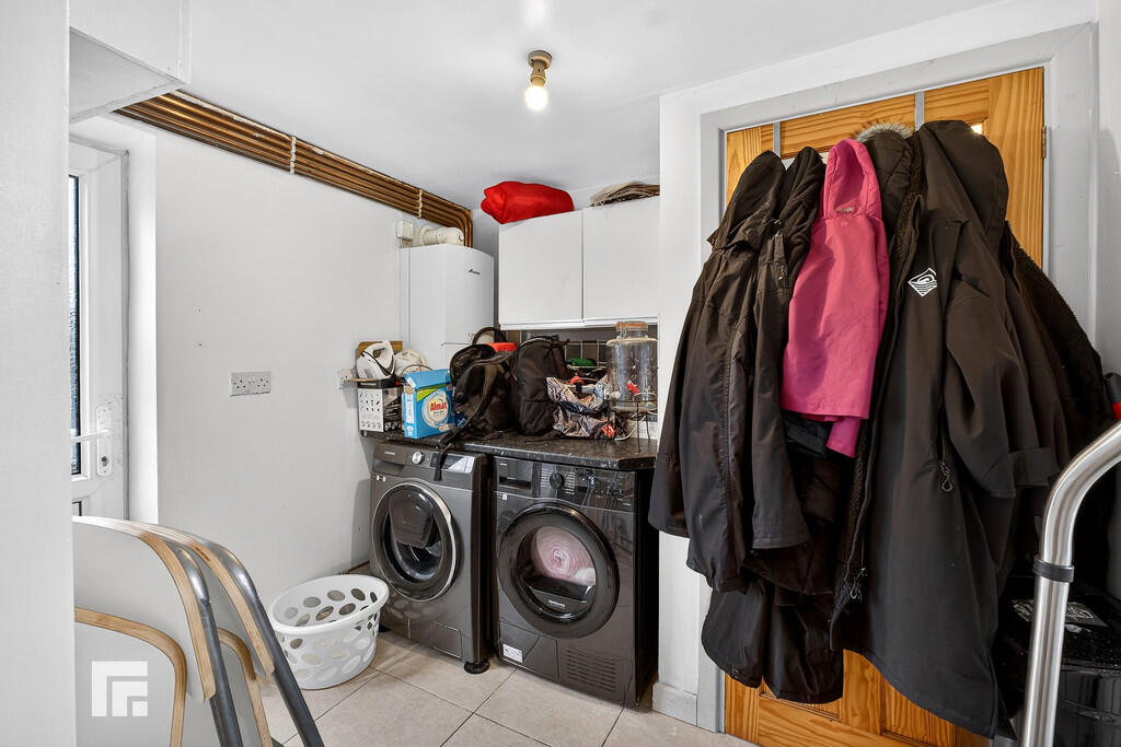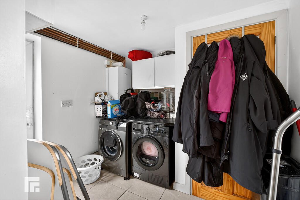 UTILITYROOM7' 6" x 8' 3" (2.31m x 2.54m) Eye level units appointed along one side. Space for separate washing machine and dryer below laminate worktops. Tiled splashback. Worcester combi boiler. Doors to front and rear. Door to wc. Radiator.