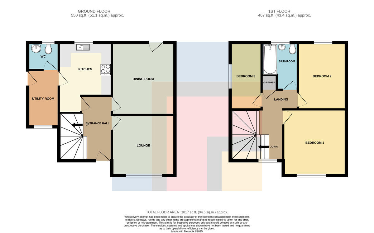 ENTRANCEHALL Entered via glazed front door into hallway. Doors to lounge, dining room and kitchen. Radiator. Stairs to first floor with storage space underneath.