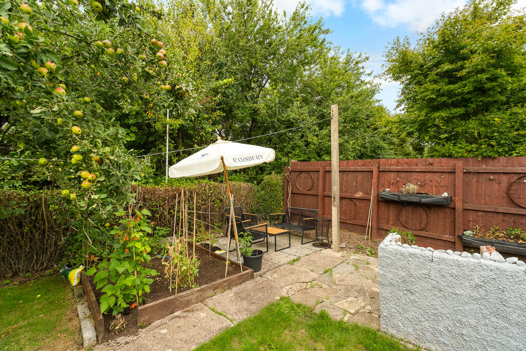 Rear -A lovely rear garden, generous in size and well established. Mostly laid to lawn. Paved area and paved pathway.
