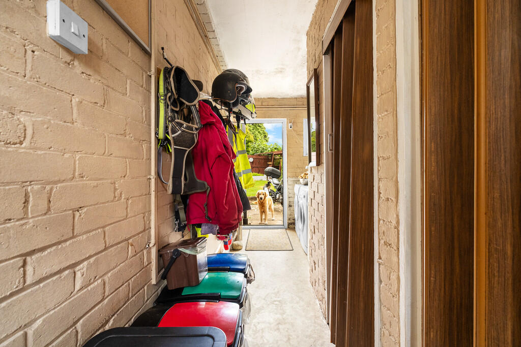 SIDEPORCH/UTILITYAREA15' 6" x 6' 0" (4.73m x 1.83m) Obscured double glazed uPVC doors to front and rear. Cloak hanging. Sliding doors to w.c and store room. Space for fridge freezer and space / plumbing for tumble dryer and washing machine.
