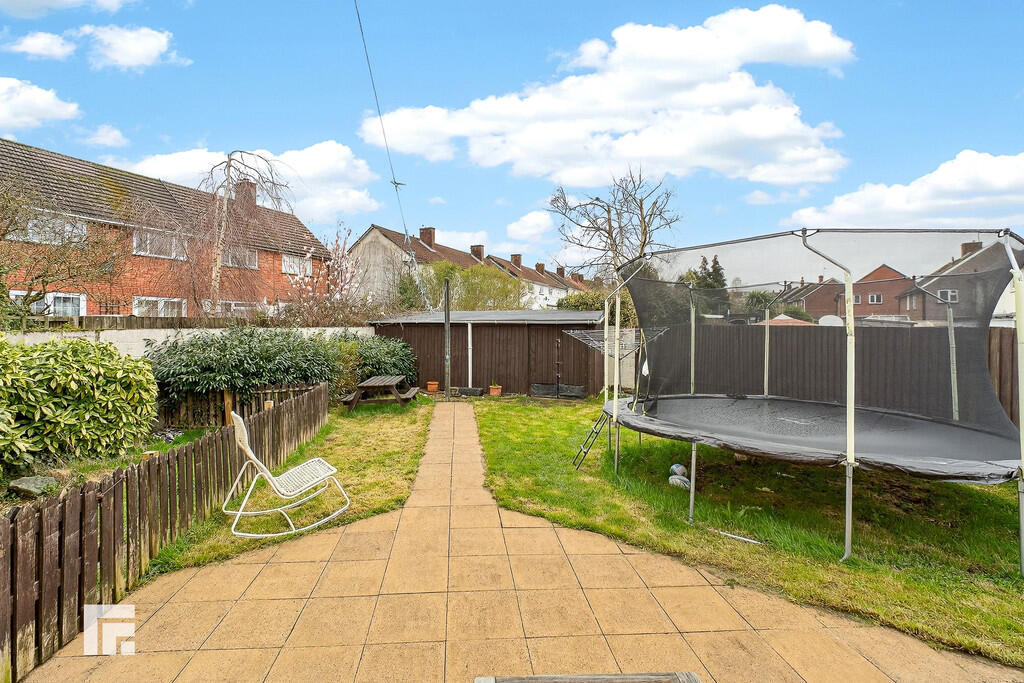 KITCHEN9' 10" x 7' 6" (3m x 2.3m) Double glazed uPVC window to rear garden. Part tiled splashbacks with a range of base and eye level units. Stainless steel sink with mixer tap. Space for gas cooker, dish washer and large fridge freezer. Radiator.