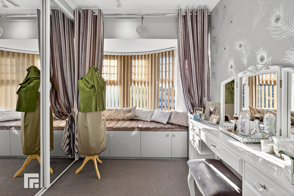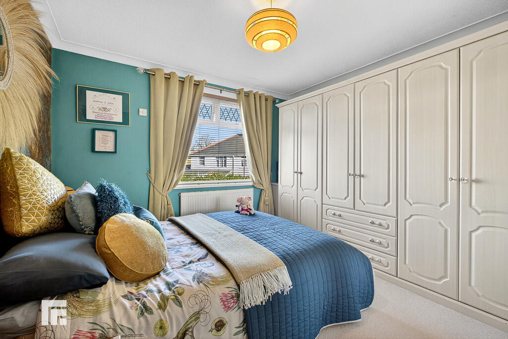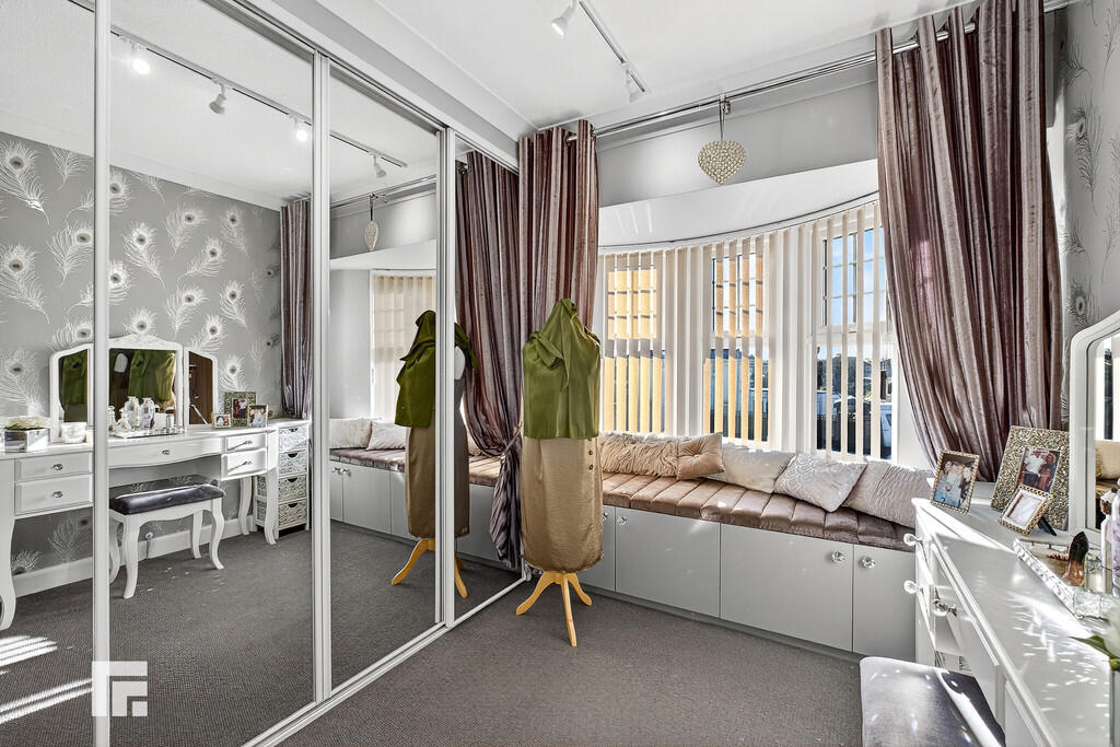 BEDROOMTWO/DRESSINGROOM10' 1" x 7' 8" (3.07m x 2.34m) Currently being used as a dressing room with a range of fitted wardrobes and storage with mirror door frontage. Double glazed bay window to the front. Fitted carpet.