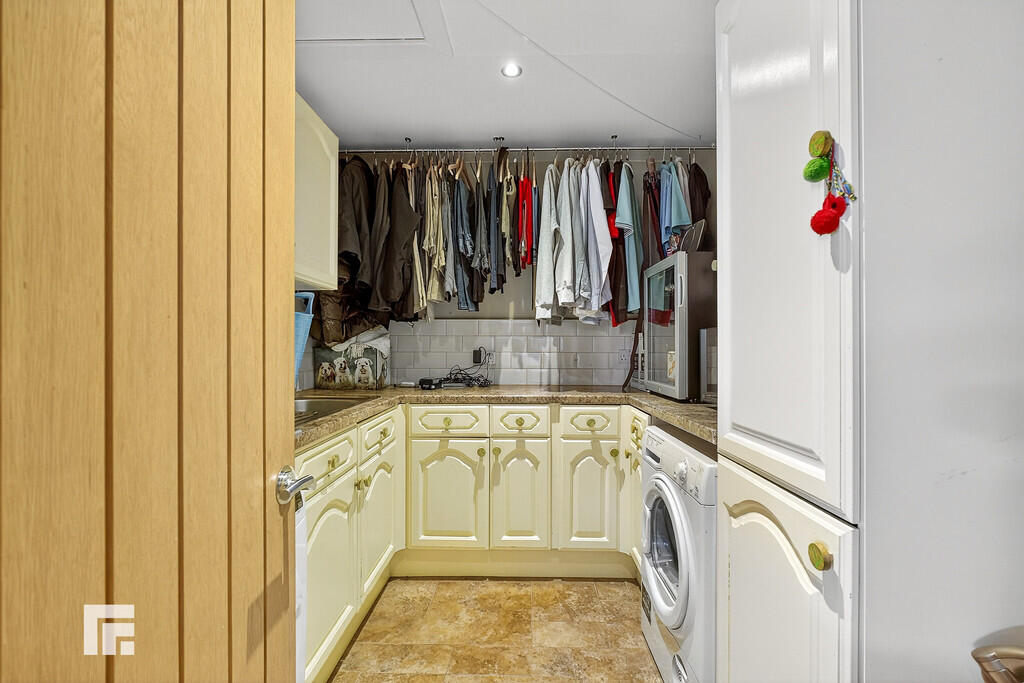 UTILITYROOM Spacious Utility Room with a range of base and wall units with work surfaces incorporating sink and drainer. Recess and plumbing for two appliances. Wall mounted gas combination central heating boiler. Continuation of flooring.