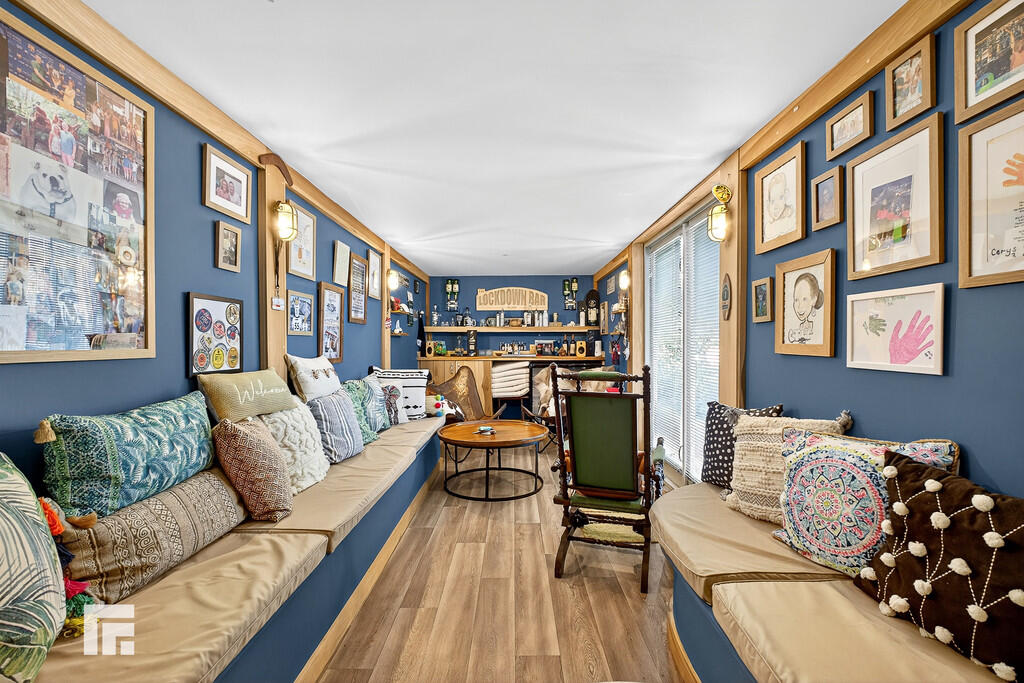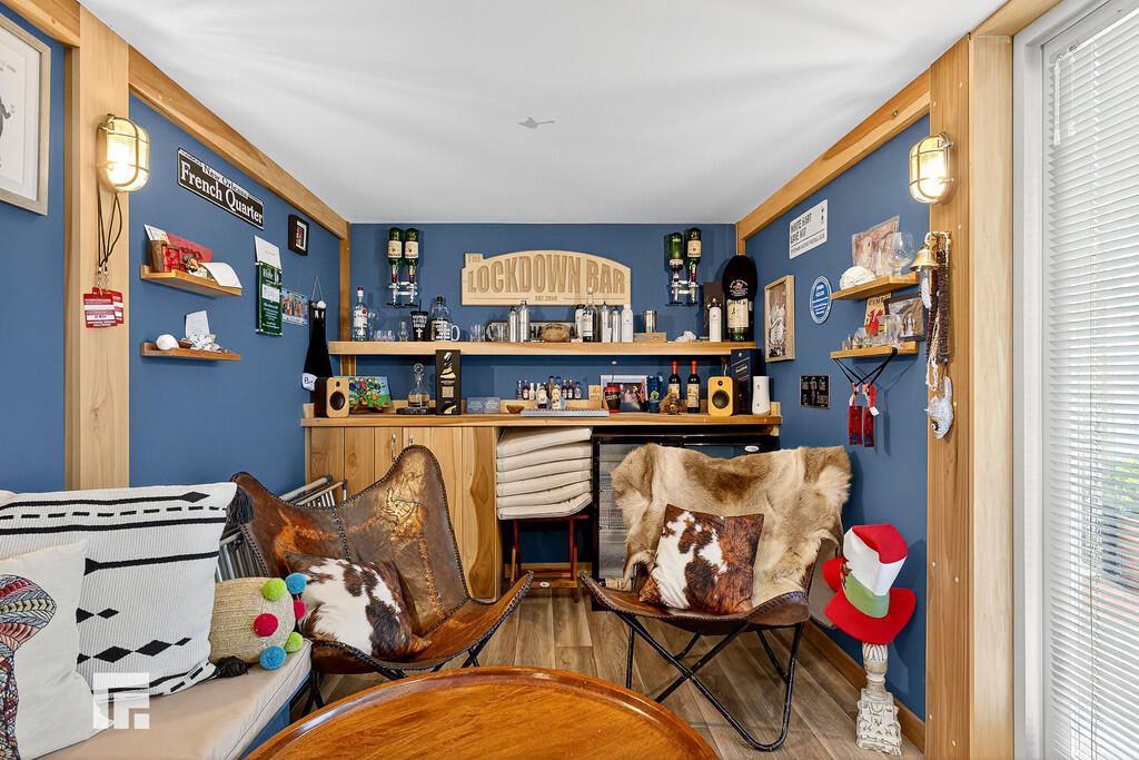 Bar Area: Self contained building offering versatile living and currently being used as a bar and entertainment living space. Briefly comprising separate front door and entrance hall with great storage. Door to w.c and sitting room open to an attractive bath and with double glazed French doors with access to the garden.