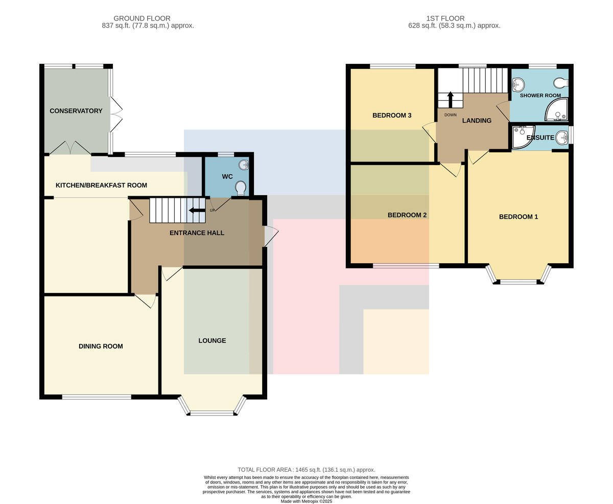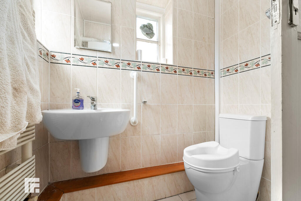 DOWNSTAIRSWC5' 7" x 5' 7" (1.721 m x 1.713 m) Tiled walls. Ladder style radiator. Boiler. WC with inset flush. Wash hand basin. Two wood framed windows to side and rear aspects.