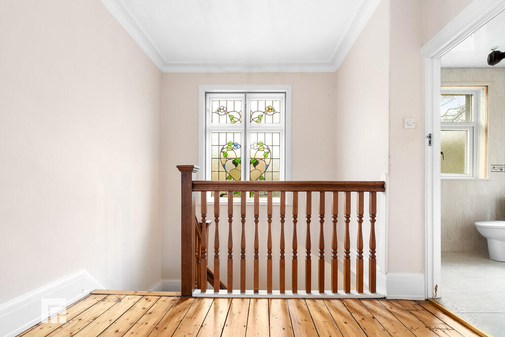 FIRSTFLOORLANDING5' 8" x 9' 1" (1.75m x 2.785m) Oak flooring. Wood framed double glazed window to rear aspect with stain glass. Coving. Doors to all rooms.