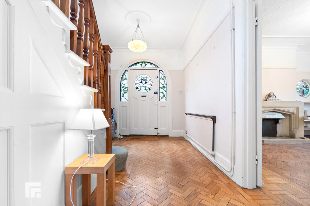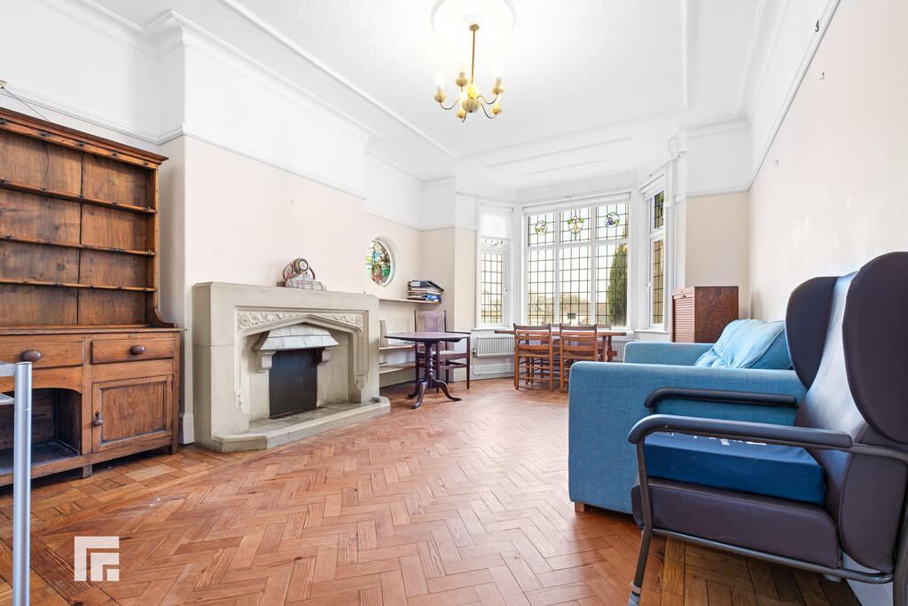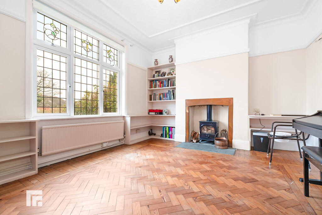 PRINCIPALRECEPTIONROOM12' 4" x 18' 7" (3.779 m x 5.672 m) Coving. Picture rail. PVC bay fronted window to front aspect. Stone fireplace. Radiator. Two rounded decorative stained glass windows to side aspect. Parquet flooring.