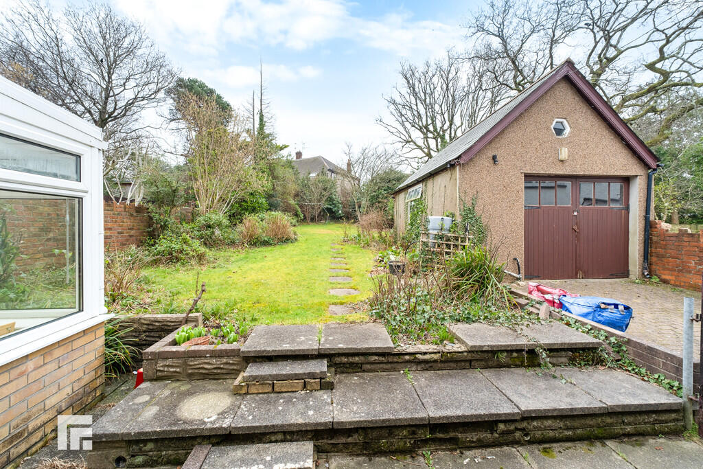 OUTSIDE REAR GARDEN - paved sitting area with lawned area. Mature trees and shrubs. East facing garden.