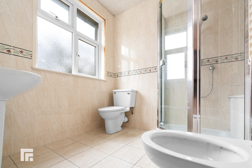 BATHROOM6' 9" x 7' 2" (2.067m x 2.191m) Tiled flooring and fully tiled walls. Loft hatch. Spotlights. PVC window with obscure glass to rear aspect. Four piece suite comprising wc, wash hand basin, bidet and shower unit. Ladder style radiator.