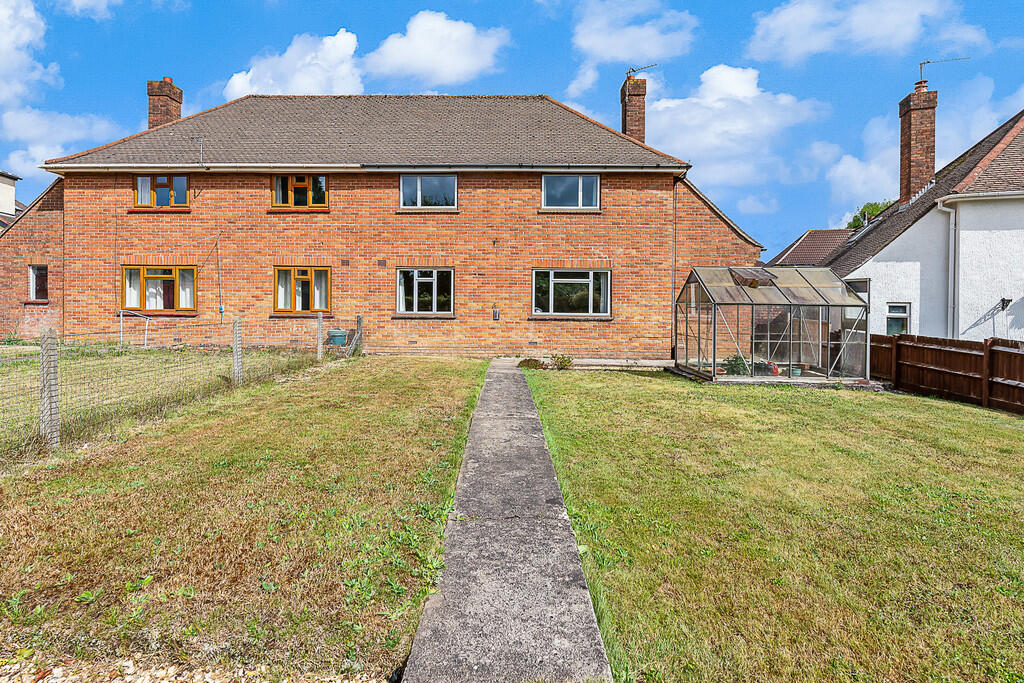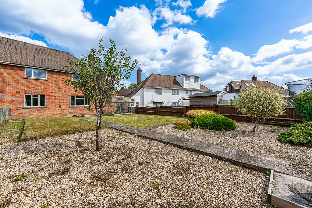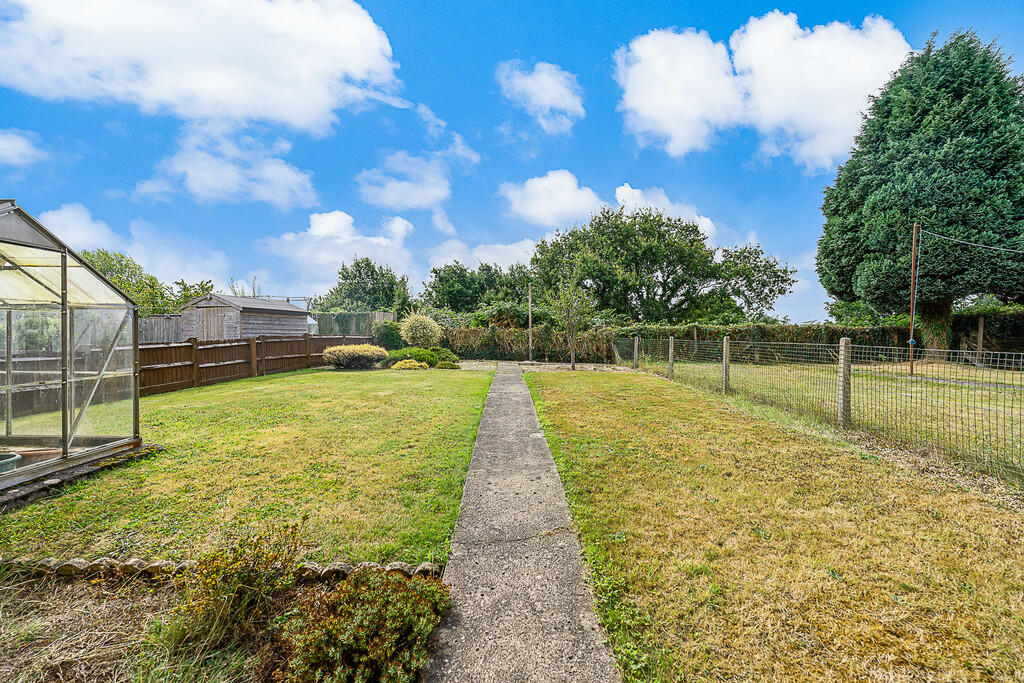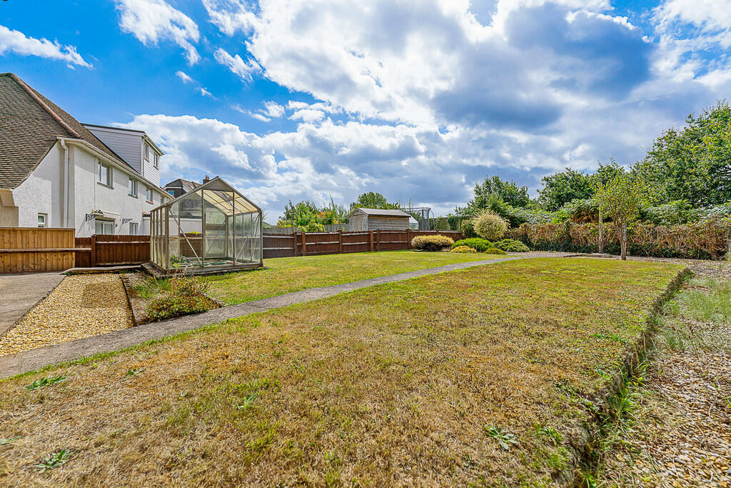 Rear - A good side rear garden mostly laid to lawn with footpath and stone chipped areas. Greenhouse. Gate to side leading to front.