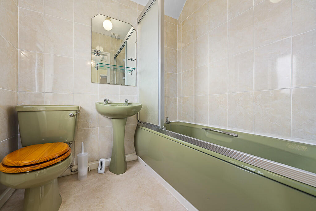 BATHROOM6' 4" x 5' 6" (1.94m x 1.69m) Aluminium framed obscured double glazed window to front. Radiator. Tiled walls. Panelled bath with hot and cold taps and with electric shower over, pedestal wash hand basin with hot and cold taps, w.c.