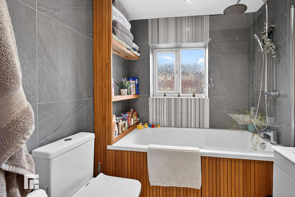 BATHROOM Double glazed opaque window to the rear. Closed cistern w.c, wash hand basin. Panelled bath with shower over.