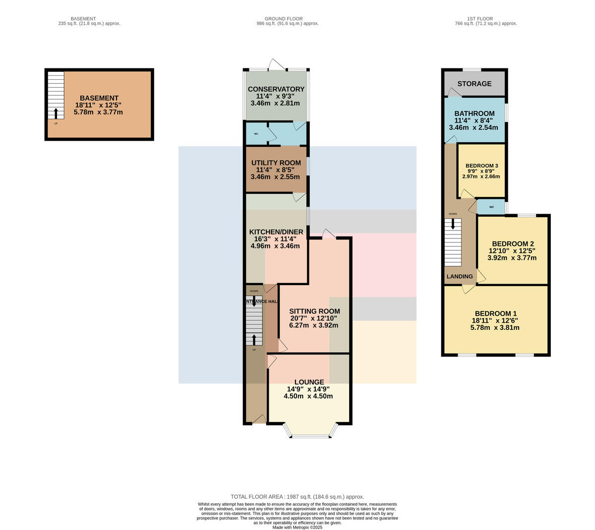 ENTRANCEHALL Entered via front door leading from front garden. Carpet to floor. Radiator. Pendant light fitting. Power points. Doors to lounge, sitting room, dining room, kitchen and basement. Stairs rising to first floor.