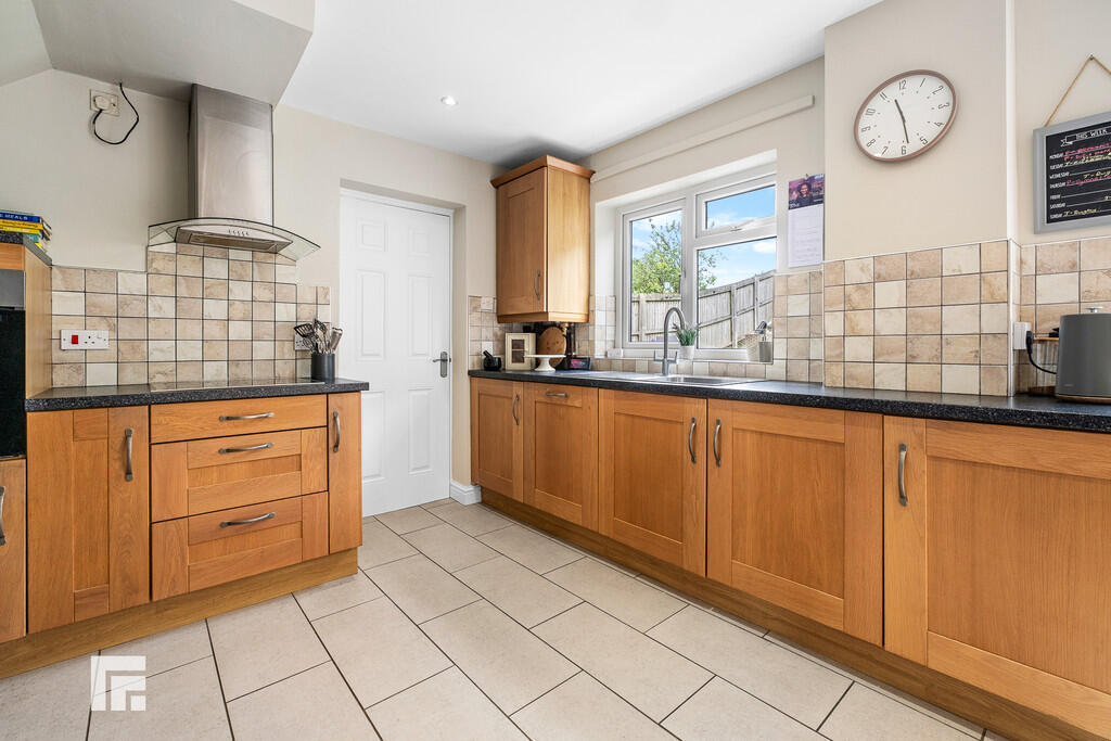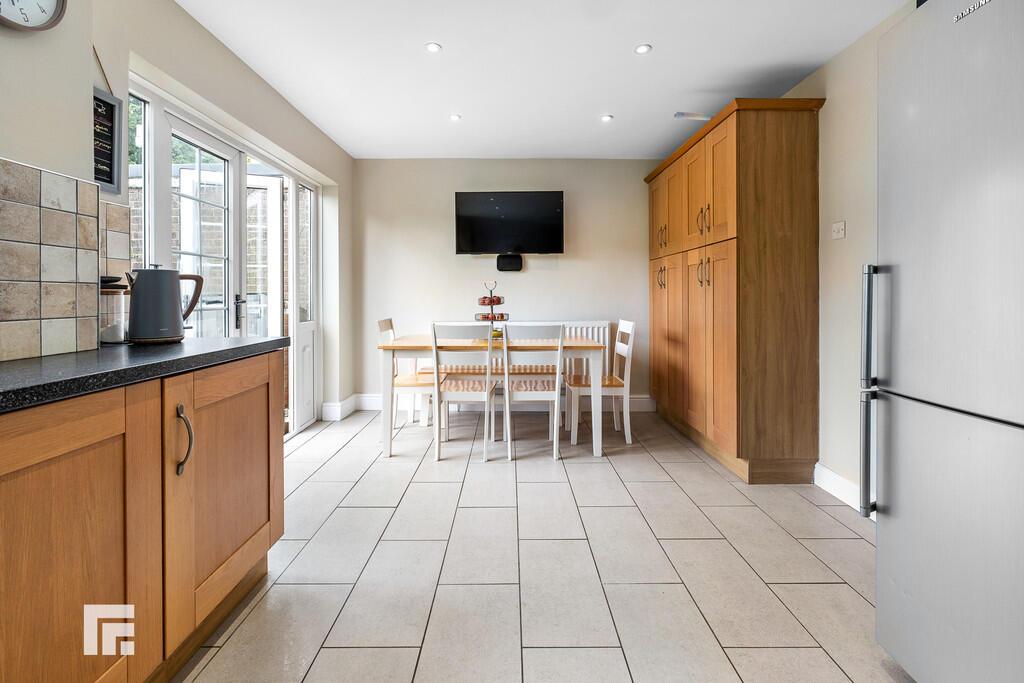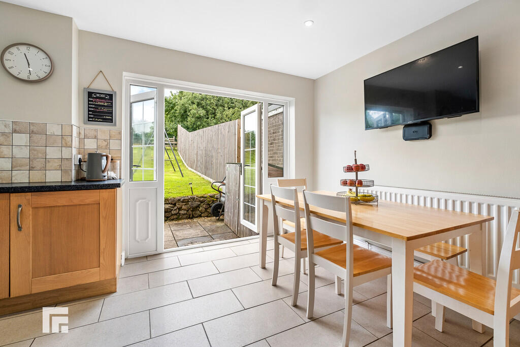 KITCHEN/DININGROOM17' 9" x 10' 6" (5.43m x 3.21m) A good sized open plan kitchen/dining room. Appointed along three sides, low level cupboards beneath laminate worktops, stainless steel sink with chrome mixer tap and side drainer, four ring electric hob with extractor hood, integrated single oven, integrated dish washer, additional cupboards to one side and space for fridge freezer. Tiled flooring and splashback. Cupboard housing 'Valliant' combi boiler. Radiator. Spotlights. uPVC window to rear. Double French doors opening into the rear garden. Door to utility room.