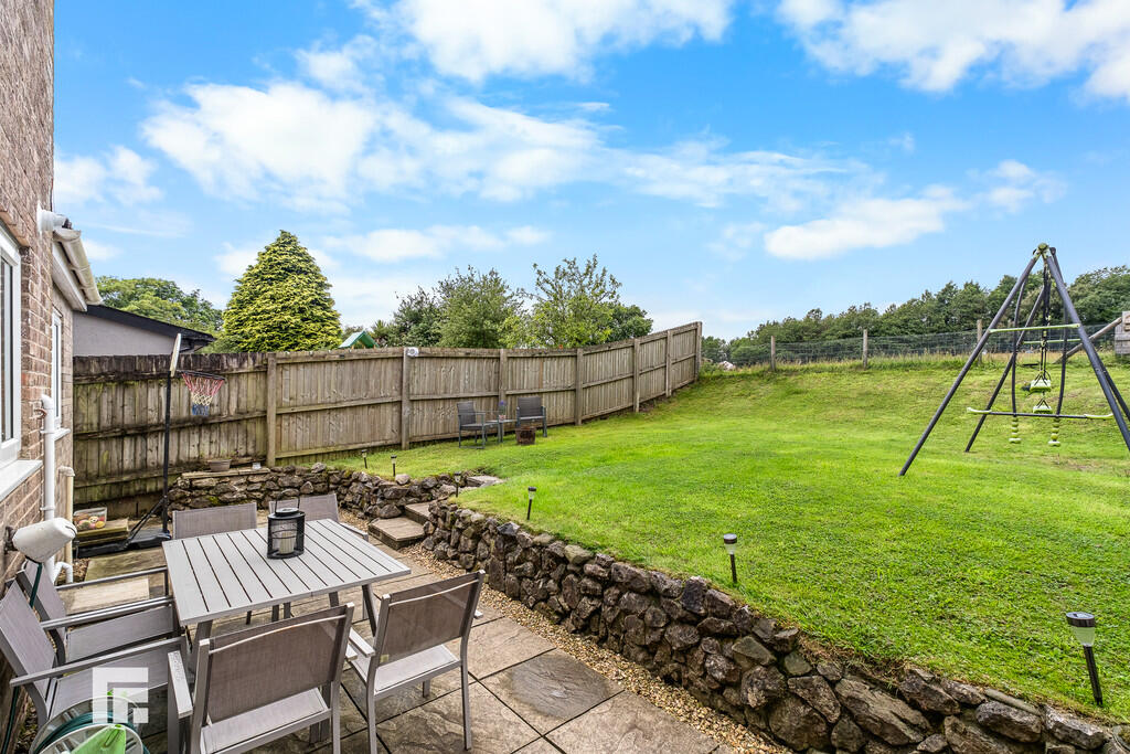 REARGARDEN A large, beautifully maintained, enclosed rear garden boarded by a timber fence; looking into an open field behind. Paved patio with steps leading to an area laid to lawn. Outside tap. Timber gate to side for access.