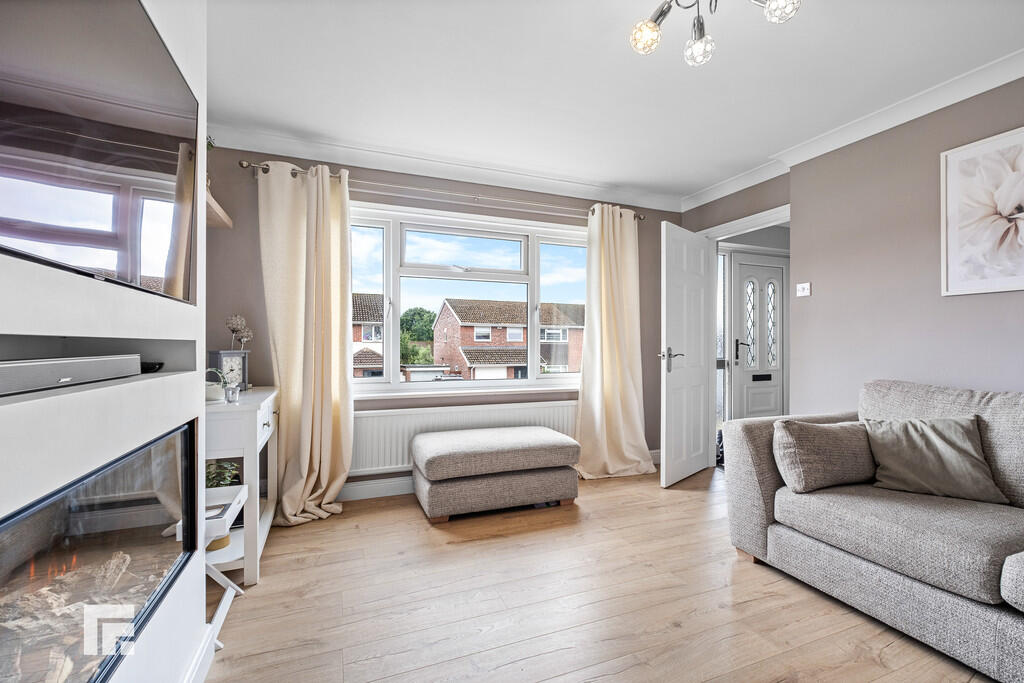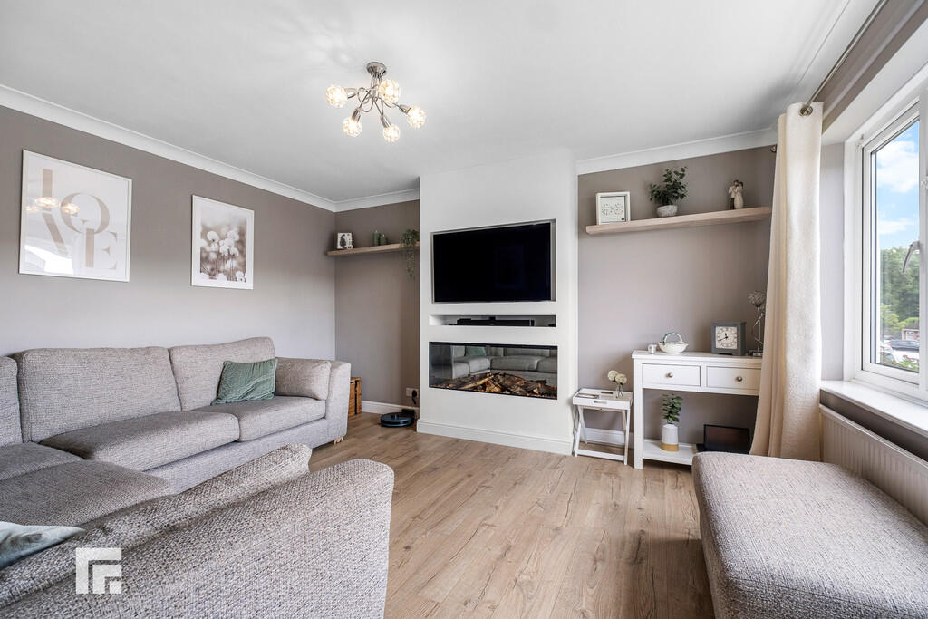 LOUNGE14' 5" x 11' 7" (4.40m x 3.55m) A light, spacious family lounge, quality wood effect laminate flooring, media wall with feature fireplace. Radiator. uPVC window to front.